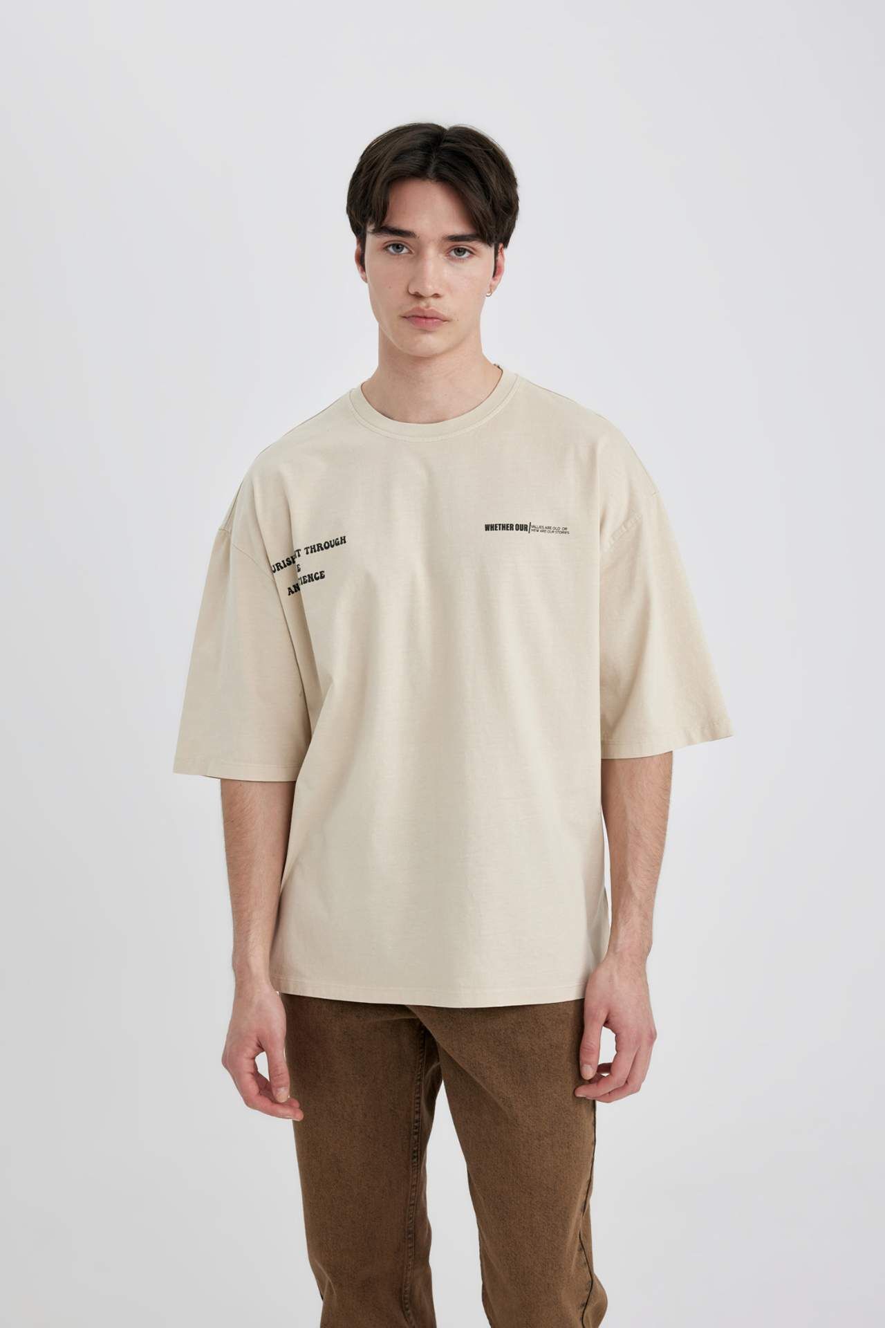 DeFactoFit Loose Fit Bisiklet Yaka Baskılı Tişört B8494AX24SMBG723