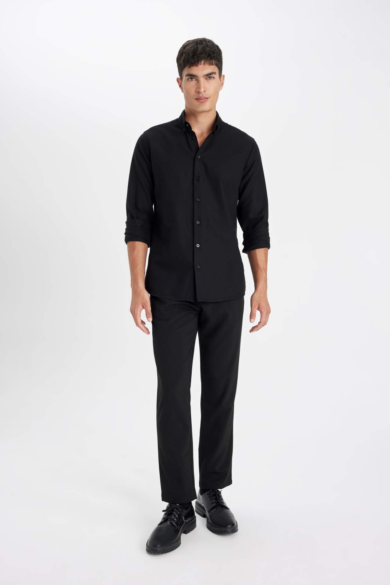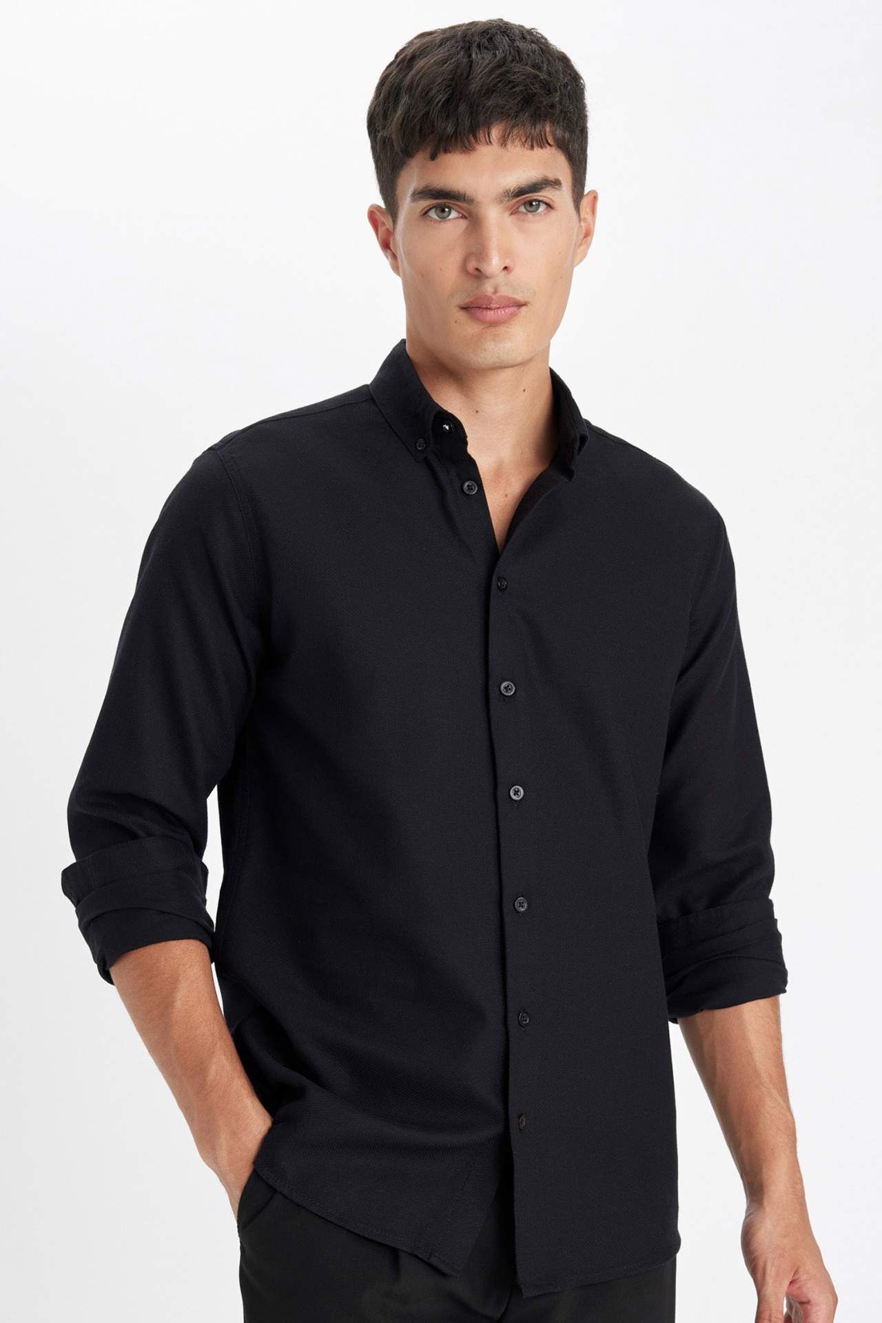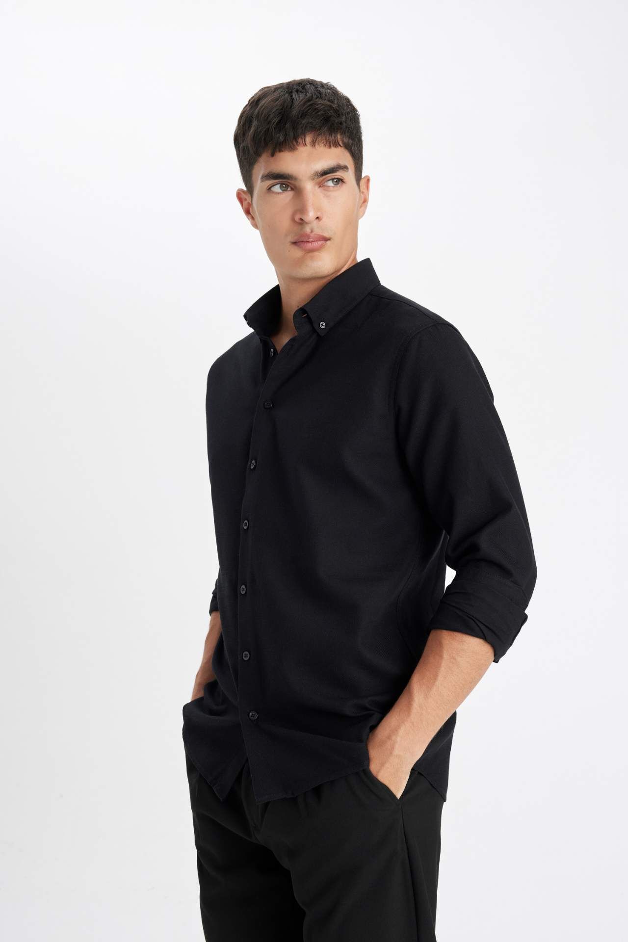 DeFactoFit Modern Fit Polo Yaka Petek Dokulu Uzun Kollu Gömlek B7383AX24SPBK27