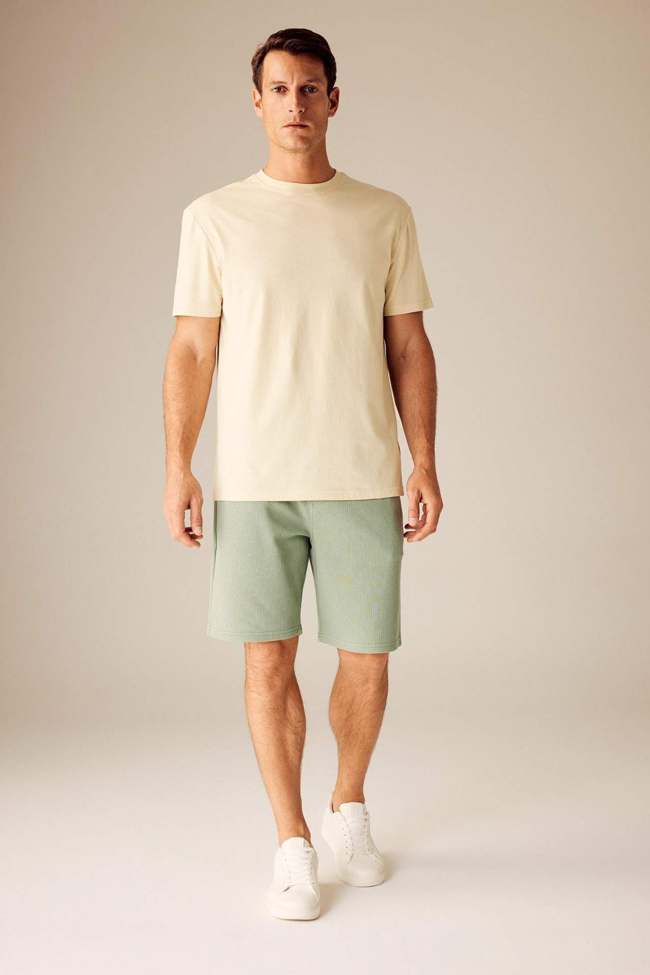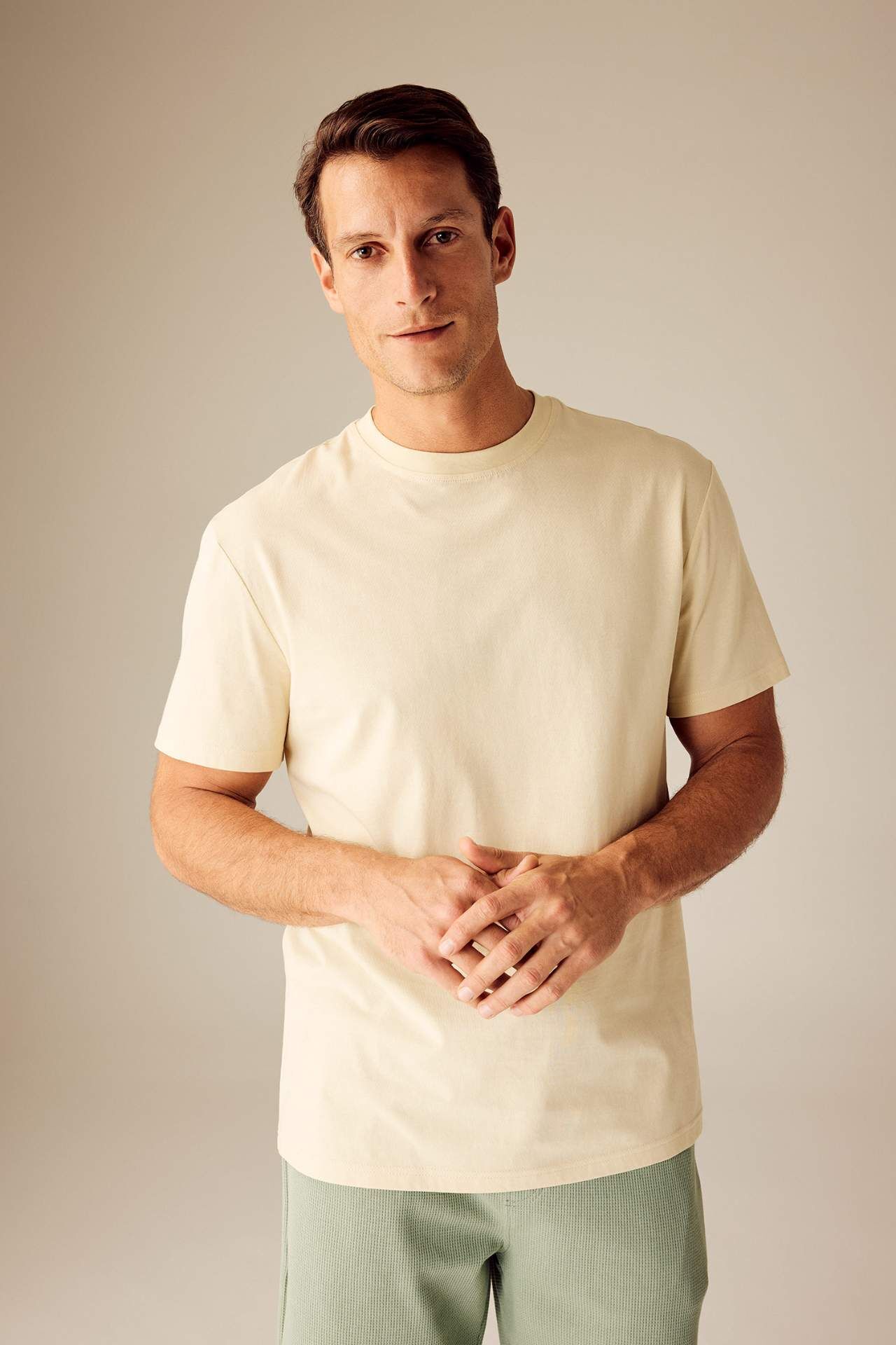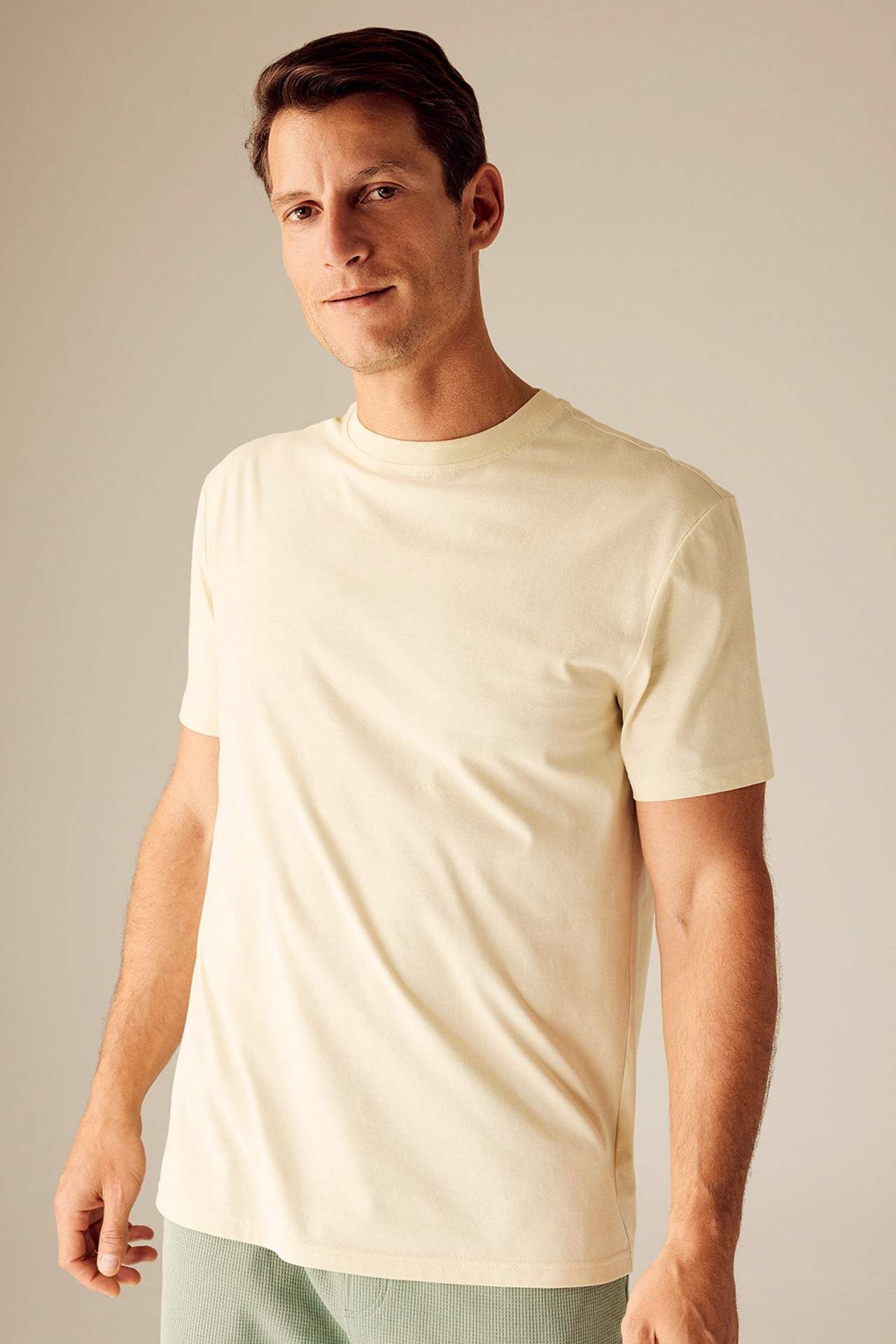 DeFactoFit New Regular Fit Bisiklet Yaka Basic Kısa Kollu Tişört Bej