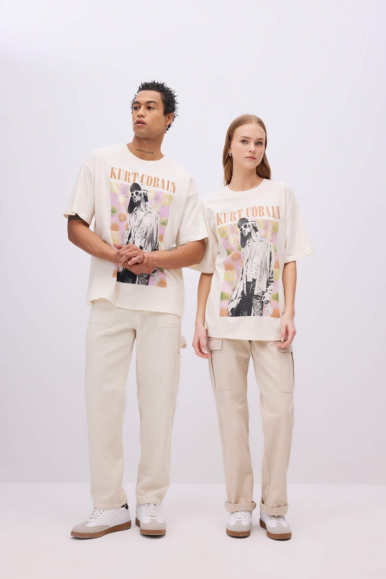 DeFactoFit Nirvana Oversize Fit Bisiklet Yaka Baskılı Kısa Kollu Tişört C3769AX24SMER103