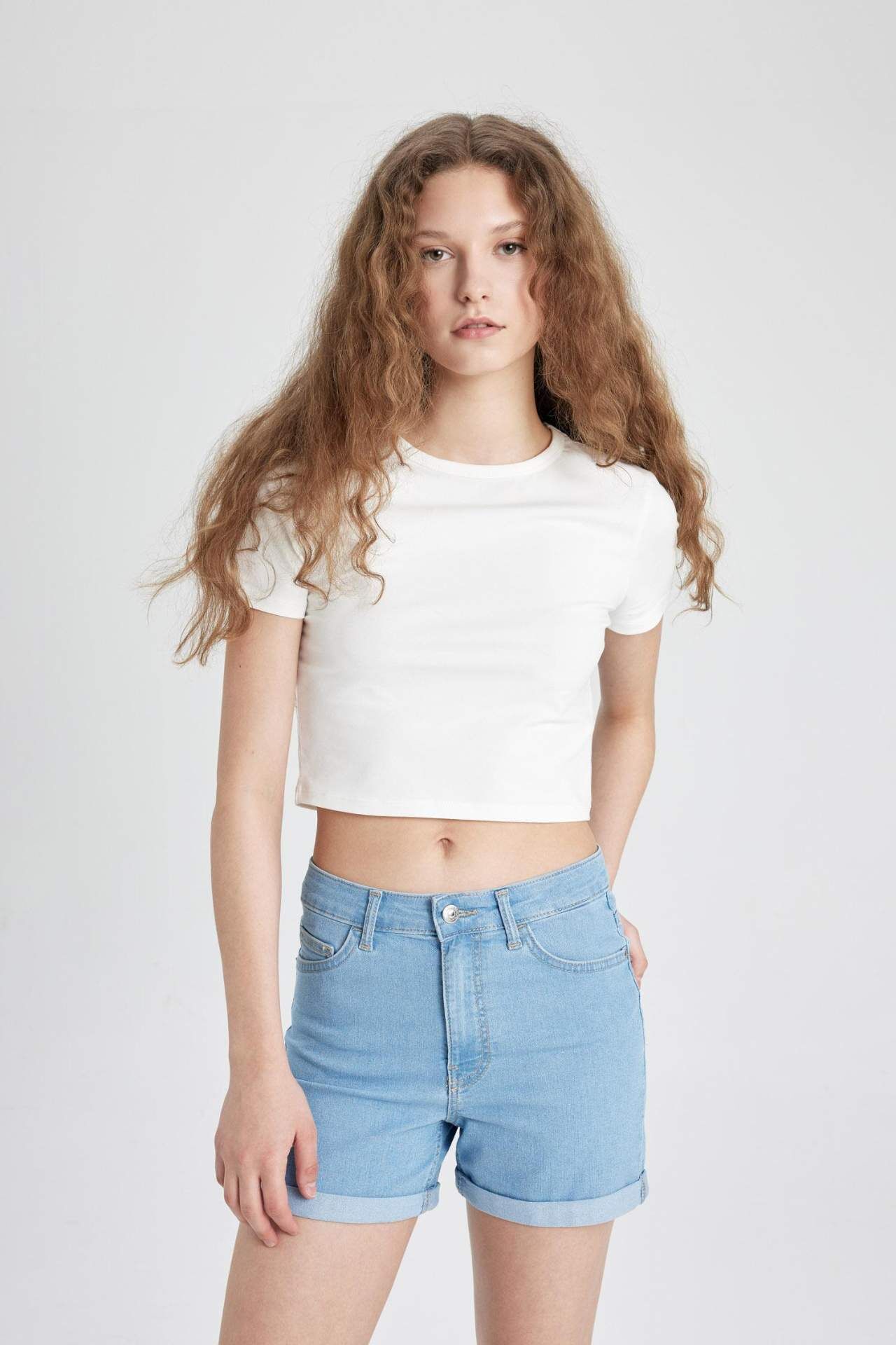 DeFactoFit Normal Bel Katlamalı Paça Jean Şort A1959AX24SMNM39