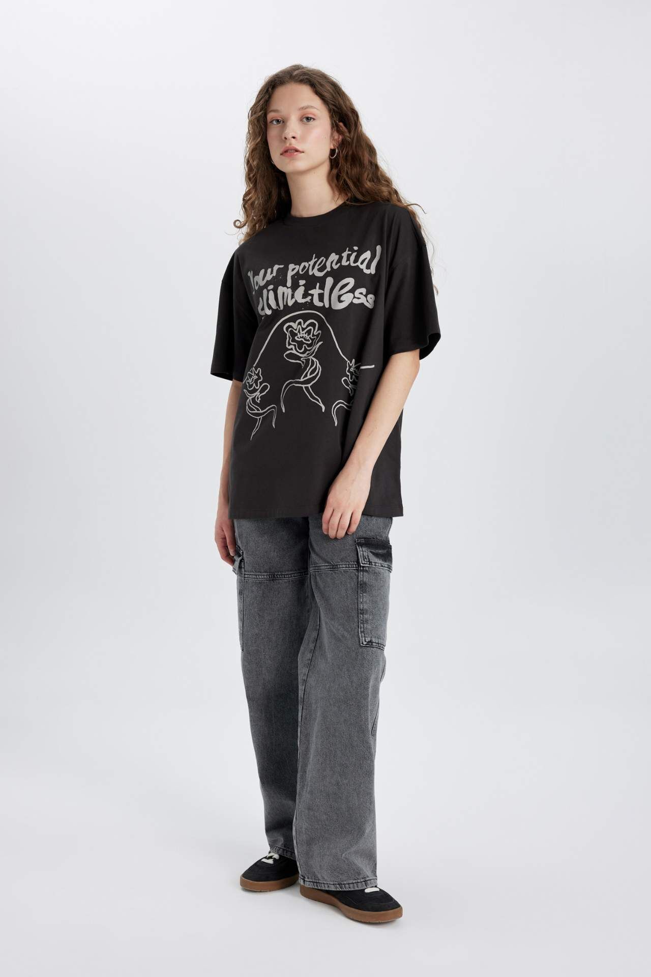 DeFactoFit Oversize Fit Bisiklet Yaka Baskılı Kısa Kollu Tişört C3124AX24SMAR191