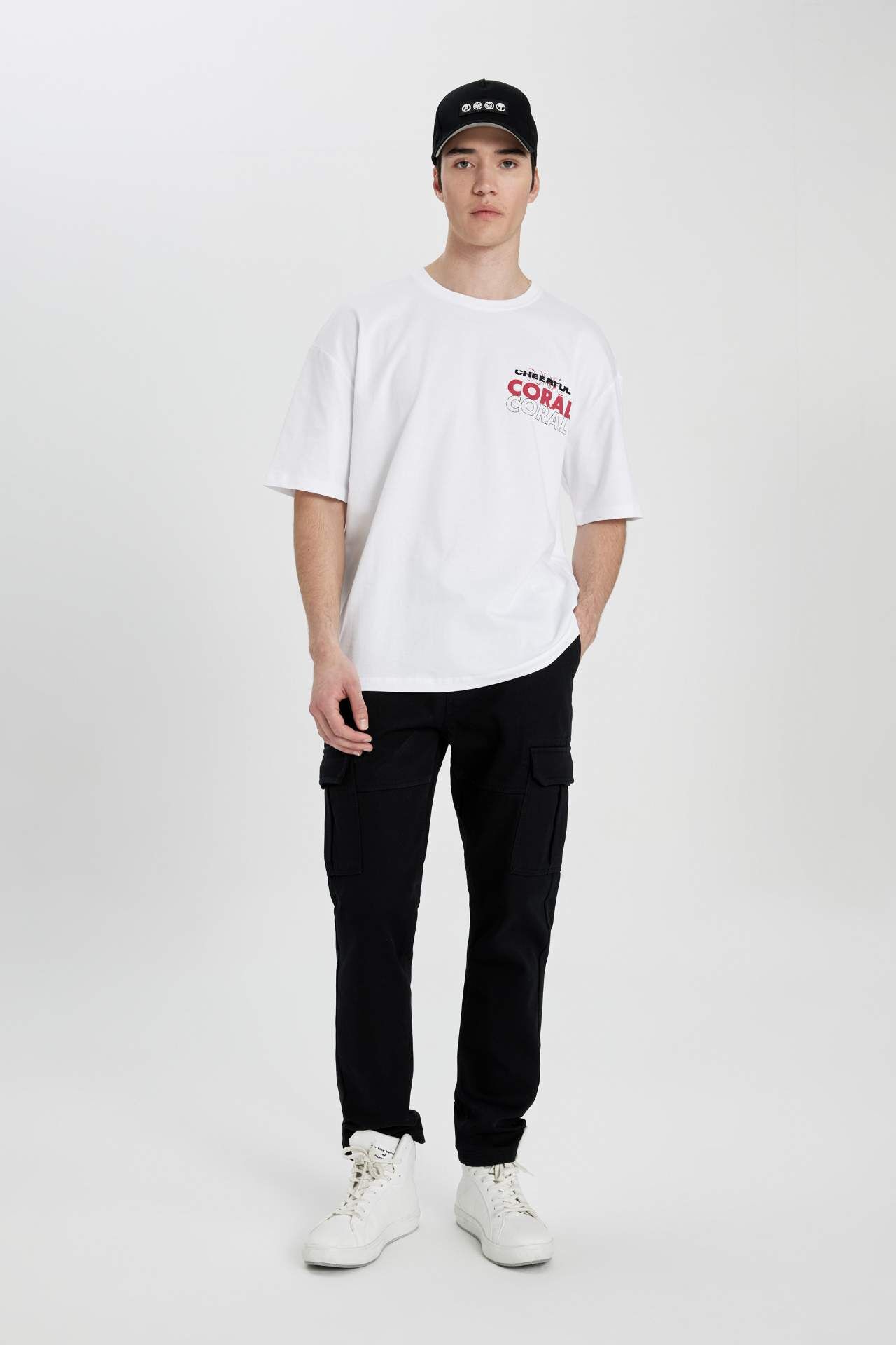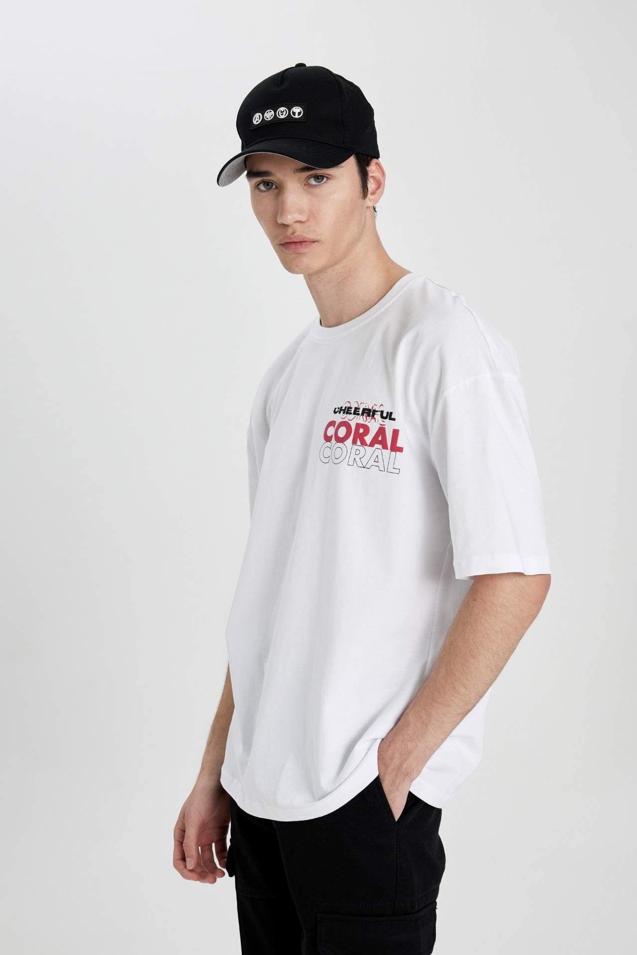DeFactoFit Oversize Fit Bisiklet Yaka Baskılı Tişört B8932AX24SMWT34
