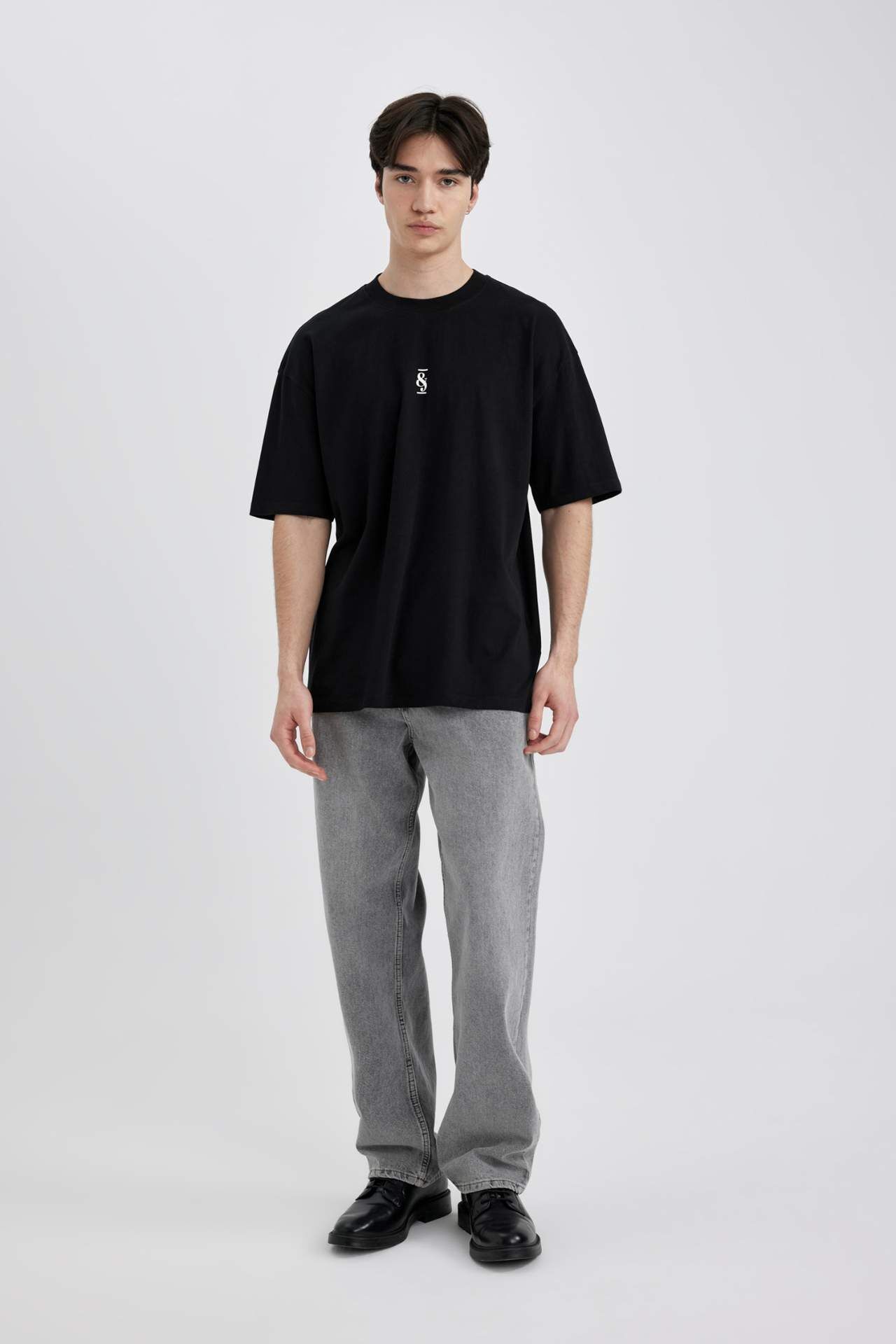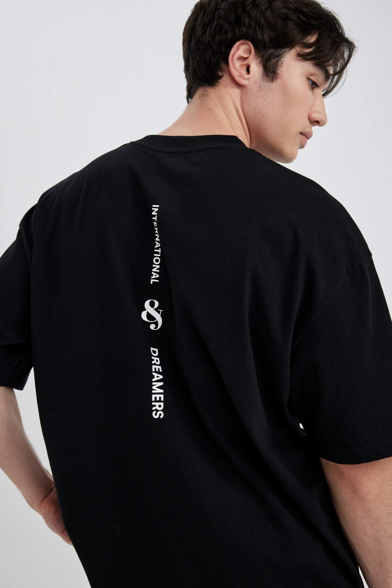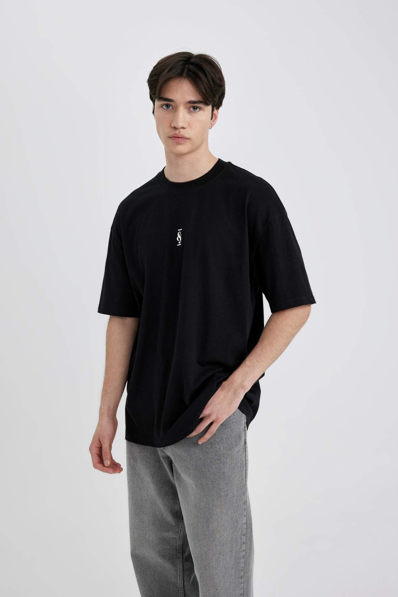 DeFactoFit Oversize Fit Bisiklet Yaka Baskılı Tişört C2134AX24SMBK81