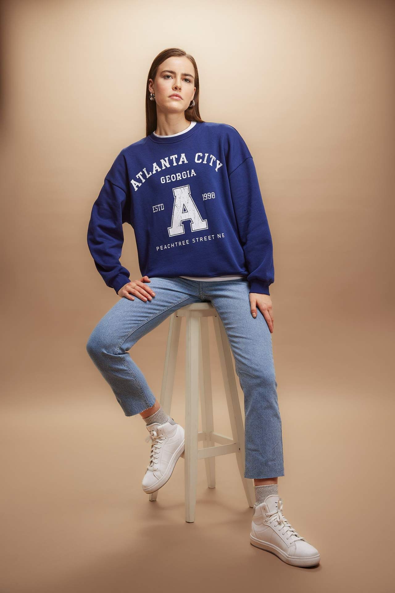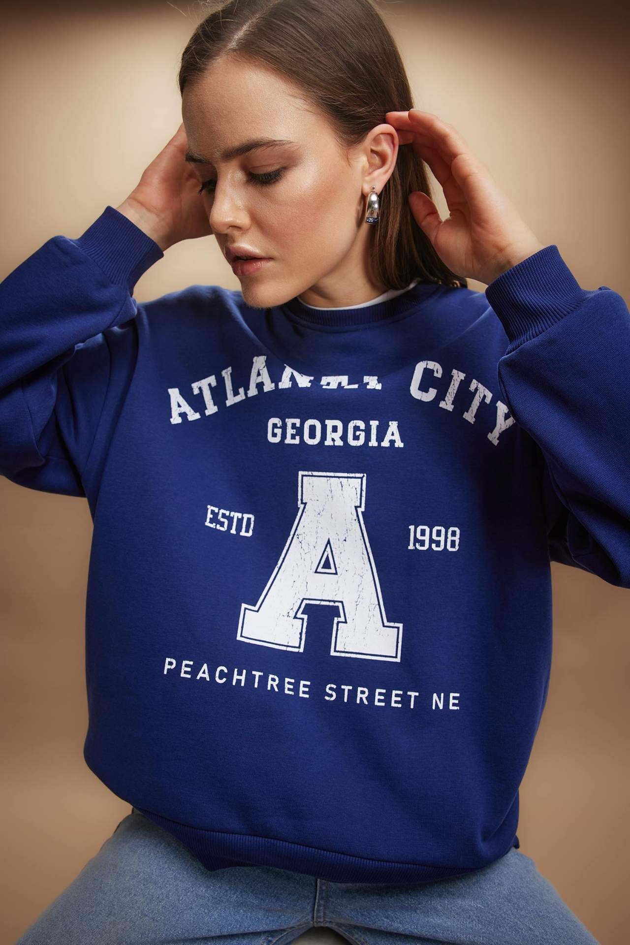 Oversize Fit Bisiklet Yaka Baskılı Sweatshirt, hem günlük giyimde hem de rahat bir akşam yemeği veya arkadaşlarınızla buluşurken tercih edebileceğiniz çok yönlü bir seçenektir. Hem şık hem de sıcak tutan bir kombin oluşturmanıza yardımcı olabilir. Pamuk 70%,Poliester 30%,Pamuk 70%,Poliester 30%