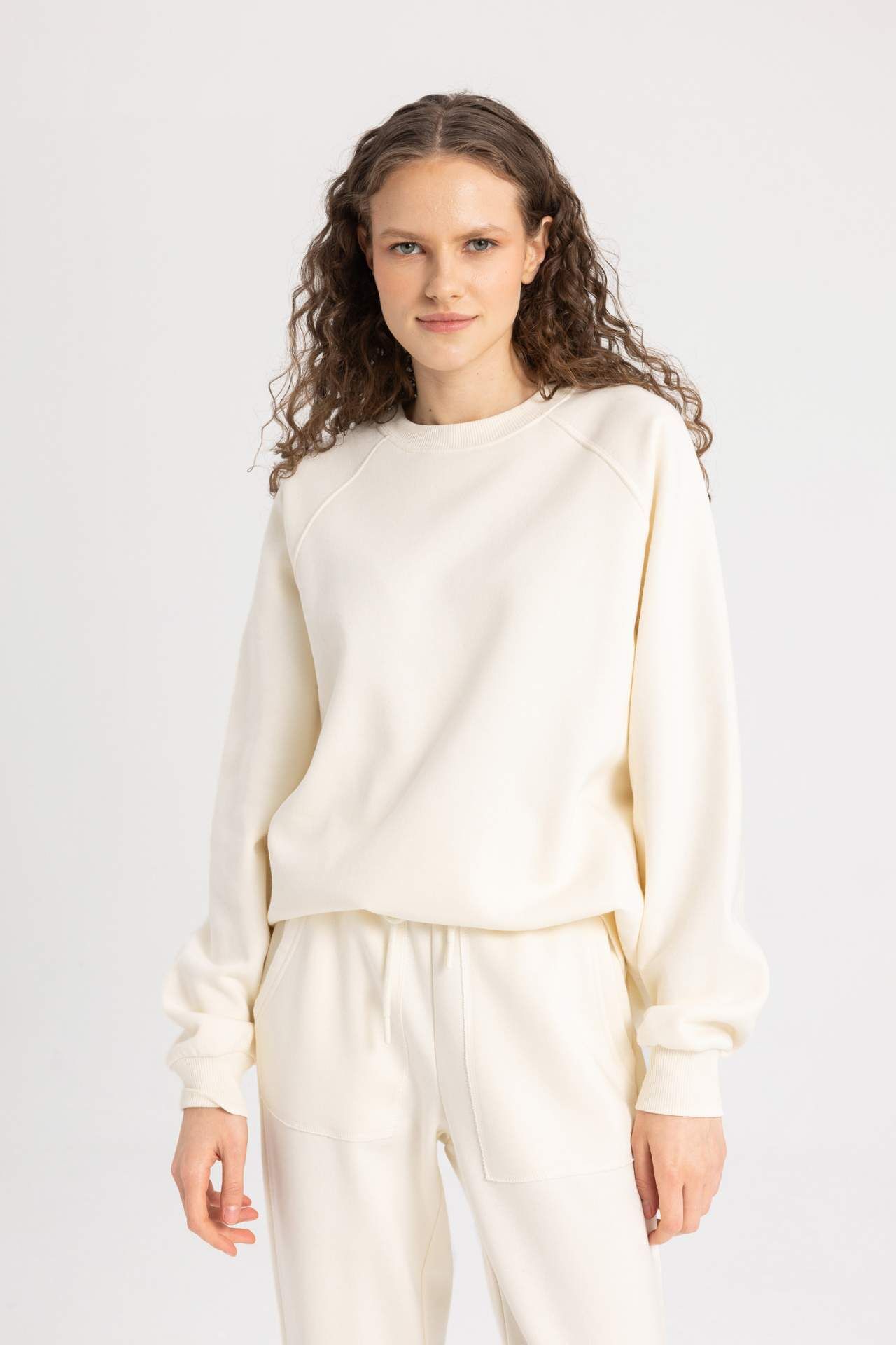 DeFactoFit Oversize Fit Bisiklet Yaka Kalın Sweatshirt