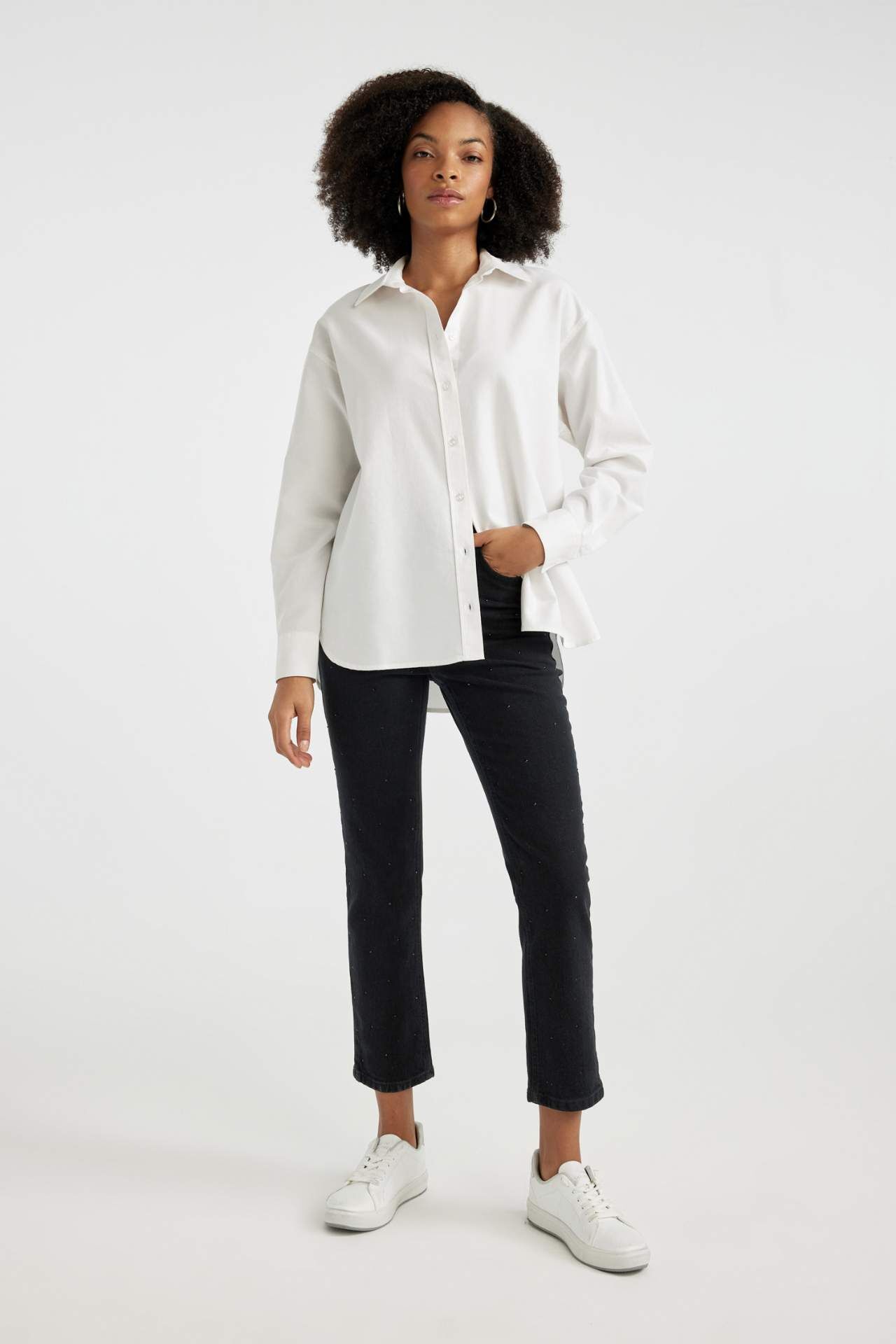 DeFactoFit Oversize Fit Gömlek Yaka Oxford Uzun Kollu Gömlek