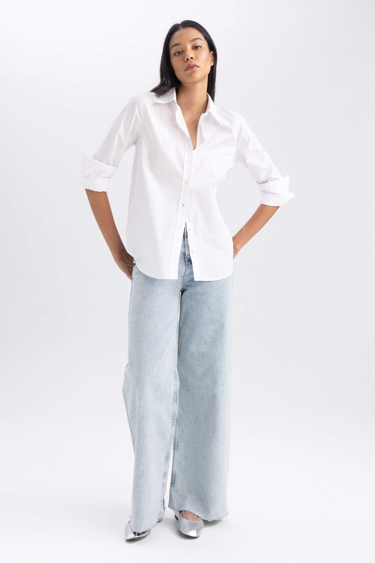 Oversize Fit Gömlek Yaka Poplin Uzun Kollu %100 Pamuk Gömlek