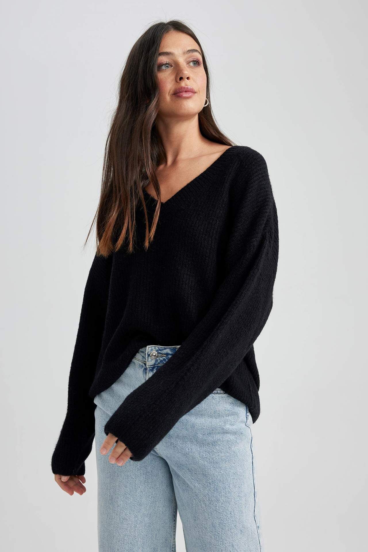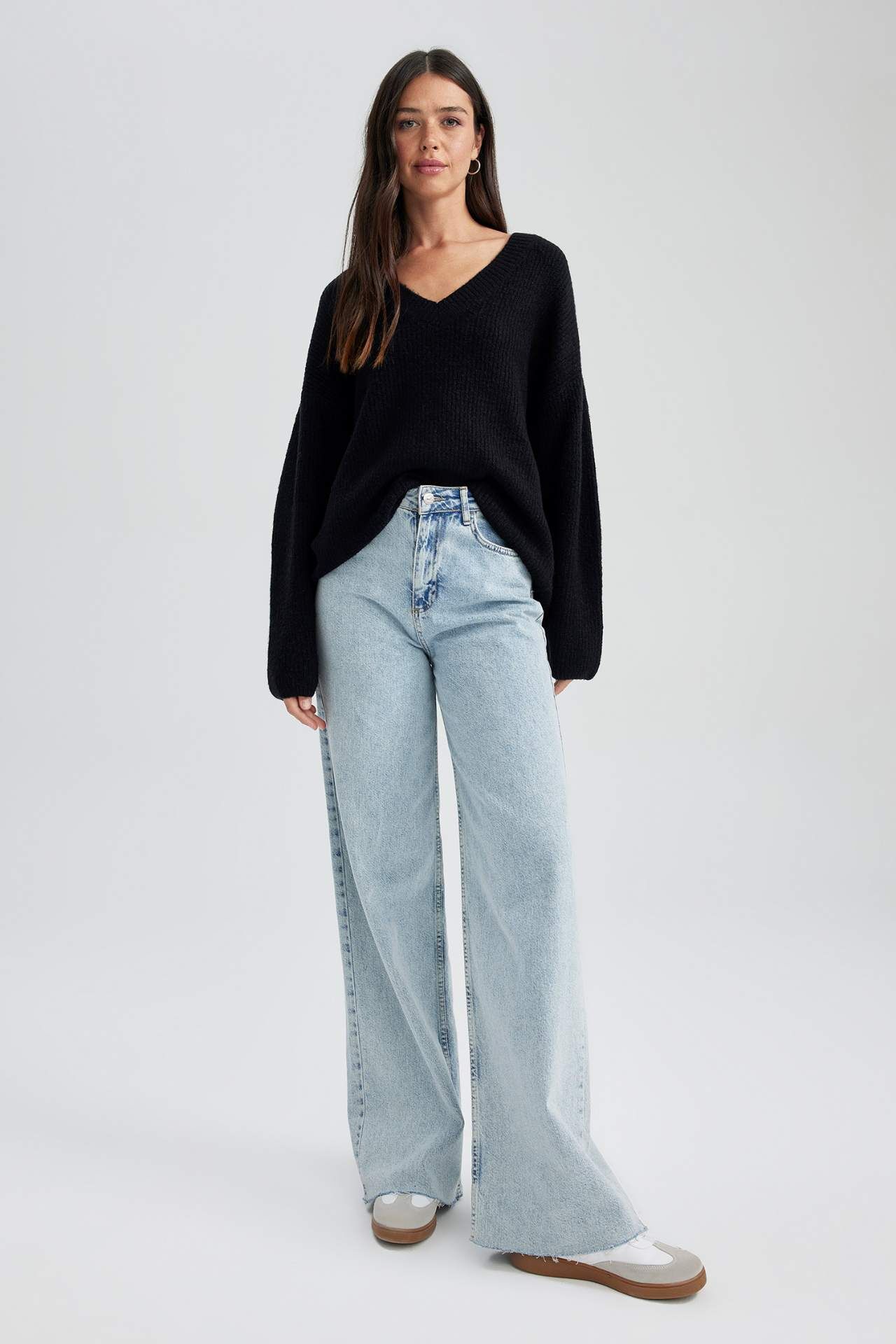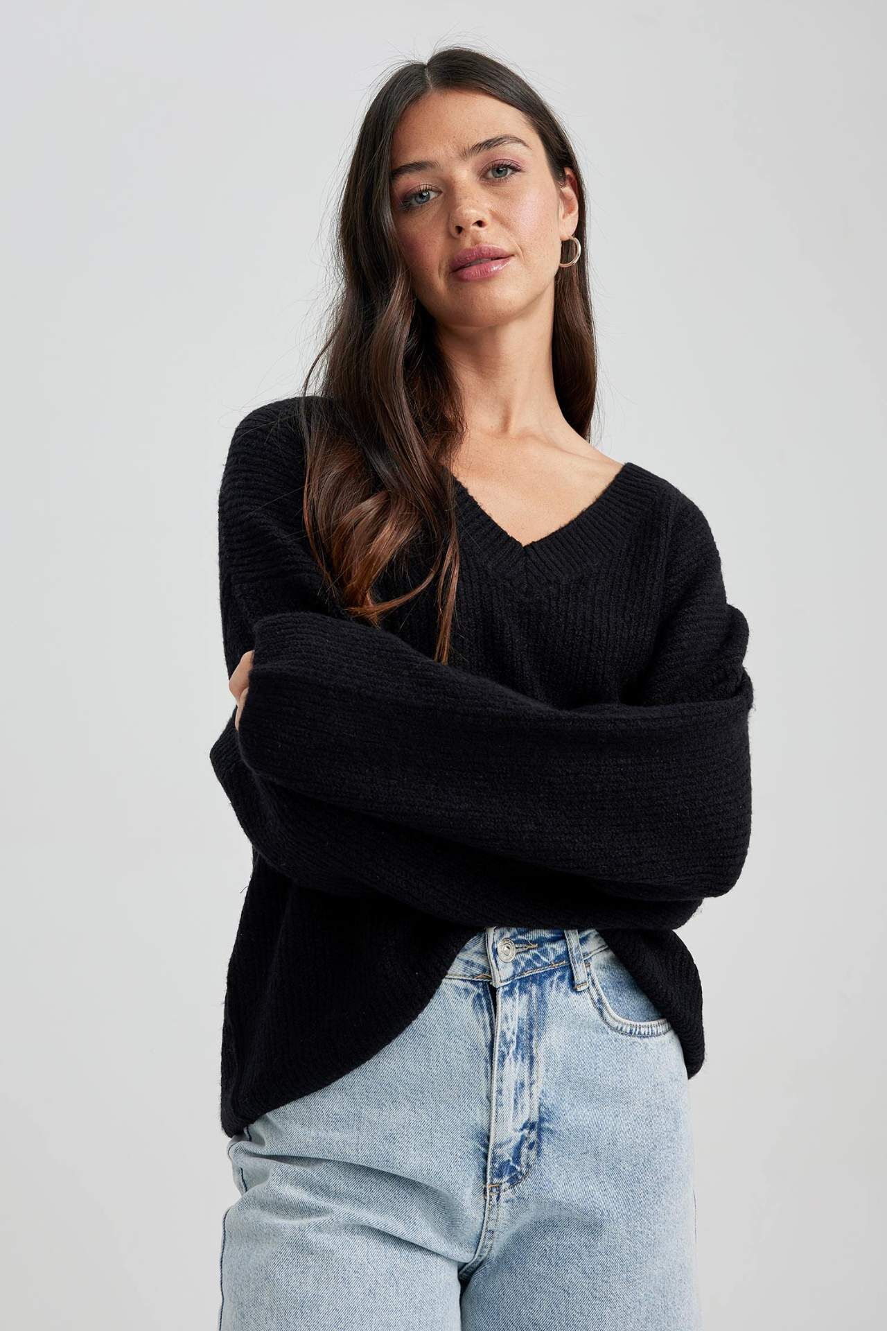 Şık v yaka modeli ve oversize bol fit rahat kalıbı ile tarz moda severlerin dolabında mutlaka olması gereken, maxi etek, mini etek, yüksek belli jean pantolon, blazer ceket, dokuma pantolon, jean pantolon ve taytlarınızla rahatlıkla kullanabileceğiniz, hem günlük hem de klasik kıyafetlerinizle kombinleyebileceğiniz DeFacto Kadın Oversize Fit V Yaka Kazak. Akrilik 78%,Elastan 1%,Poliester 21%