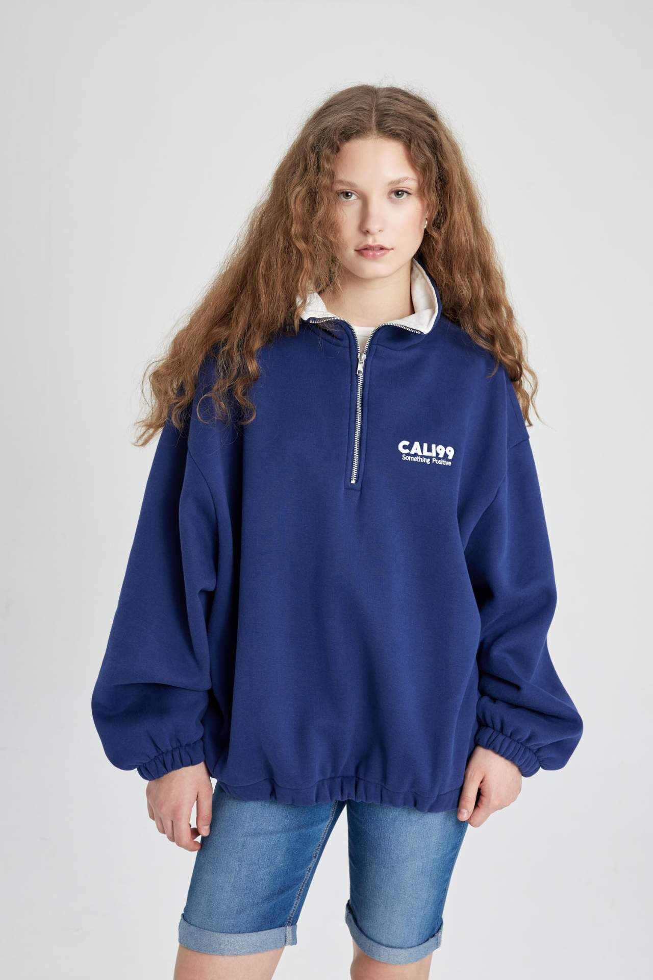 DeFactoFit Oversize Fit Yarım Fermuarlı Nakışlı Kalın Kumaş Sweatshirt C4581AX24SMNV42