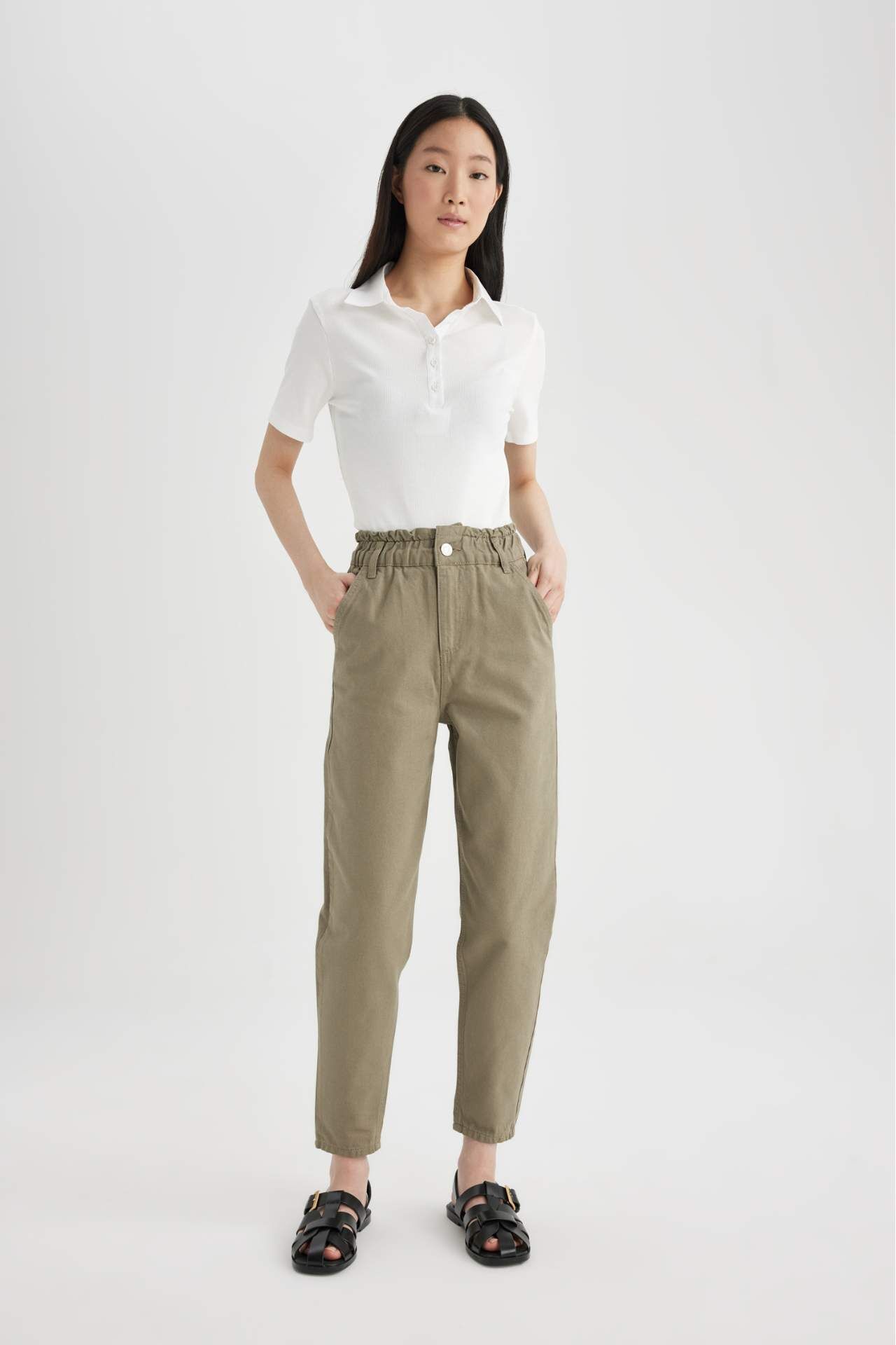 DeFactoFit Paperbag Cepli Paperbag Bel Standart Paça Gabardin Pantolon S2790AZ24SMKH419
