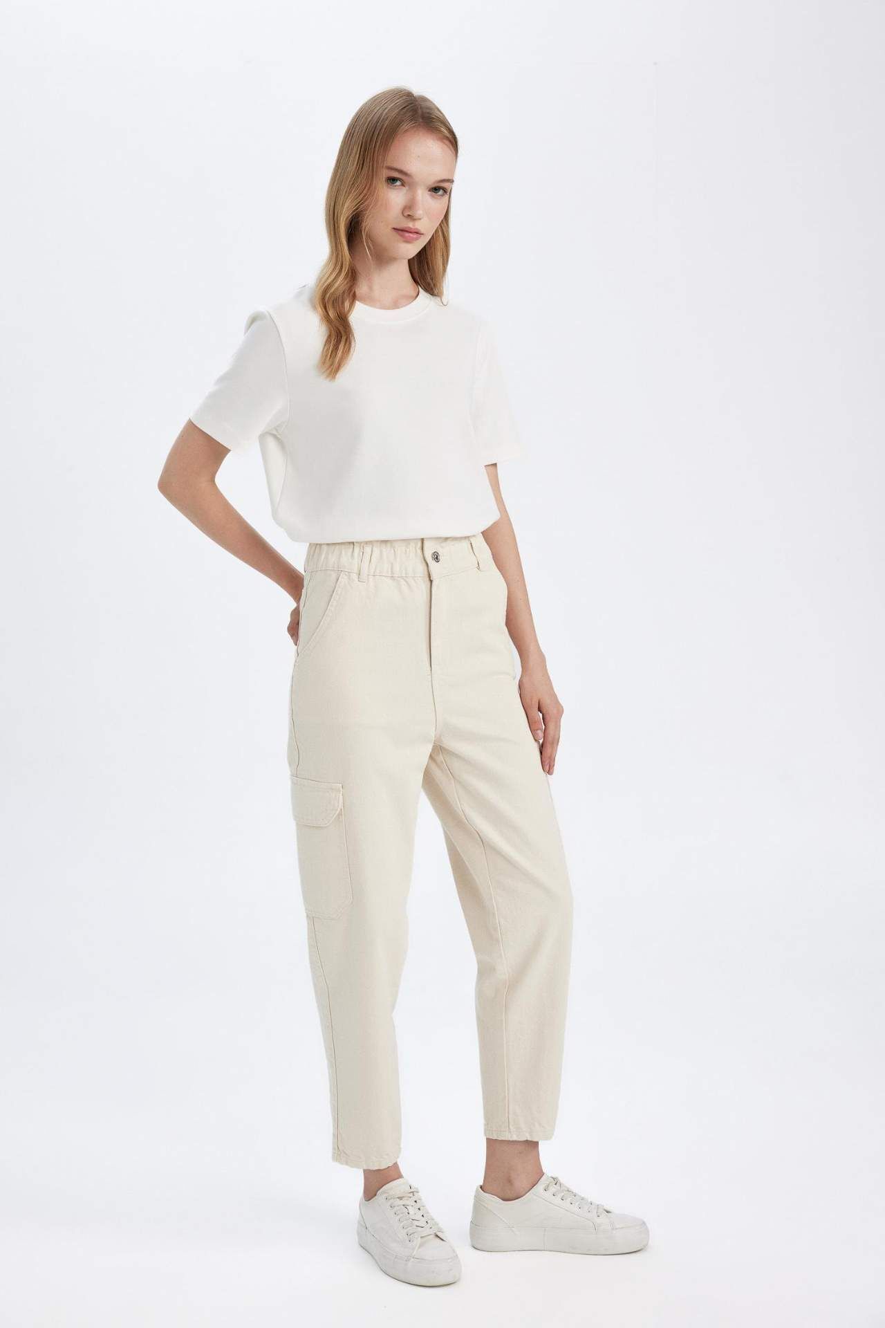 Paperbag Yüksek Bel Kargo Cepli Bilek Boy Beyaz Jean Pantolon, şıklığı ve rahatlığı bir arada sunuyor. Kaliteli dokuma malzemesi ve özenle tasarlanmış kesimiyle her mevsim stilinize uyum sağlar. Kargo detaylarıyla modern bir görünüm kazanan bu pantolon, gardırobunuzun vazgeçilmezi olacak. Şık bir bluz veya basic bir tişört ile kombinleyerek şıklığınızı tamamlayabilirsiniz. Pamuk 100%,Pamuk 100% Manken Bedeni: Göğüs: 82 Boy: 1,73 Basen: 88 Bel: 62
