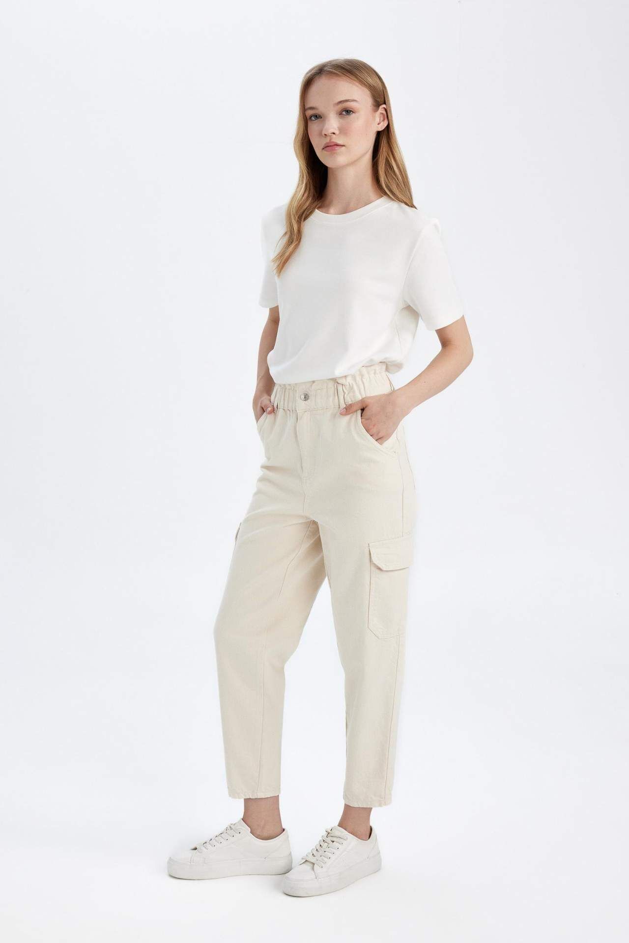 DeFactoFit Paperbag Kargo Yüksek Bel Bilek Boy Dokuma Pantolon