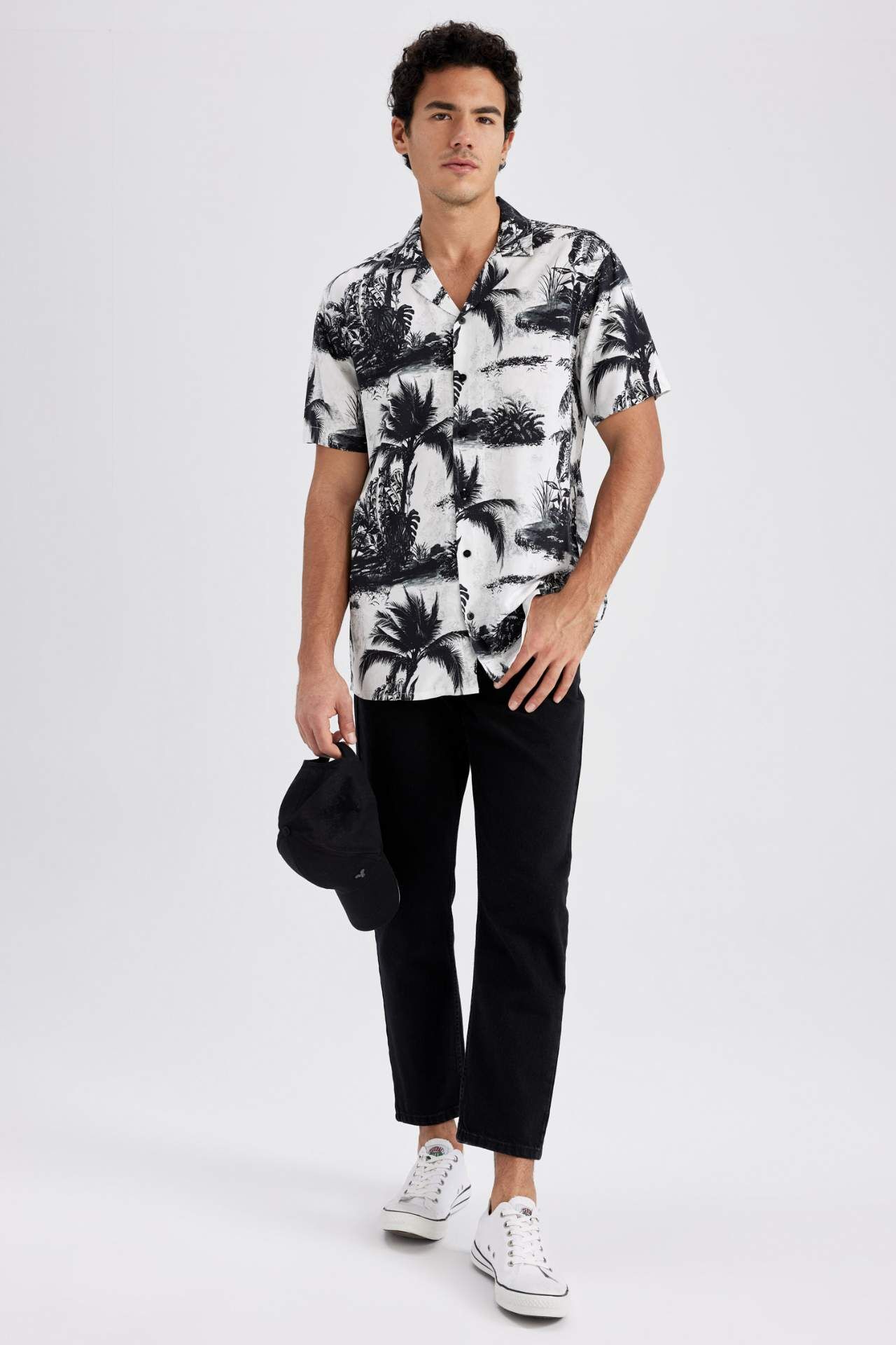 Regular Fit Apaş Yaka Baskılı Viskon Kısa Kollu Gömlek: Şıklığı ve rahatlığı bir arada sunan bu gömlek, her erkeğin gardırobunda olması gereken bir parça. Viskon kumaşıyla gün boyu ferah bir his sunarken, apaş yaka detayıyla da tarzınızı ön plana çıkarır. Kısa kollu tasarımıyla yaz aylarında da tercih edebileceğiniz bu gömlek, her kombininize şıklık katmak için ideal bir seçenek. Viskoz 100% Manken Bedeni: Göğüs: 100 Boy: 1,89 Basen: 96 Bel: 81