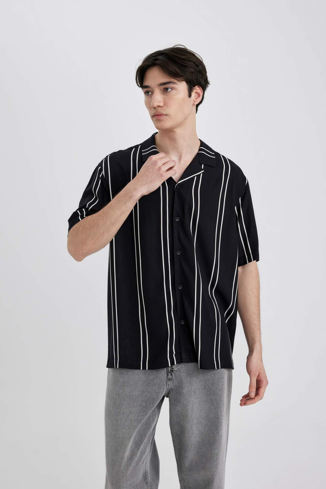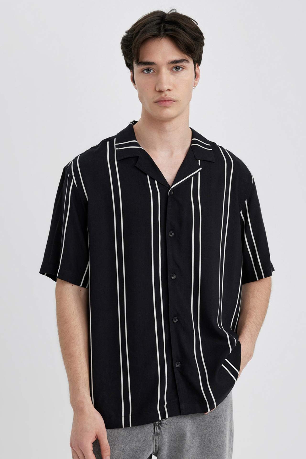 DeFactoFit Regular Fit Apaş Yaka Çizgili Kısa Kollu Gömlek B7386AX24SPBK81