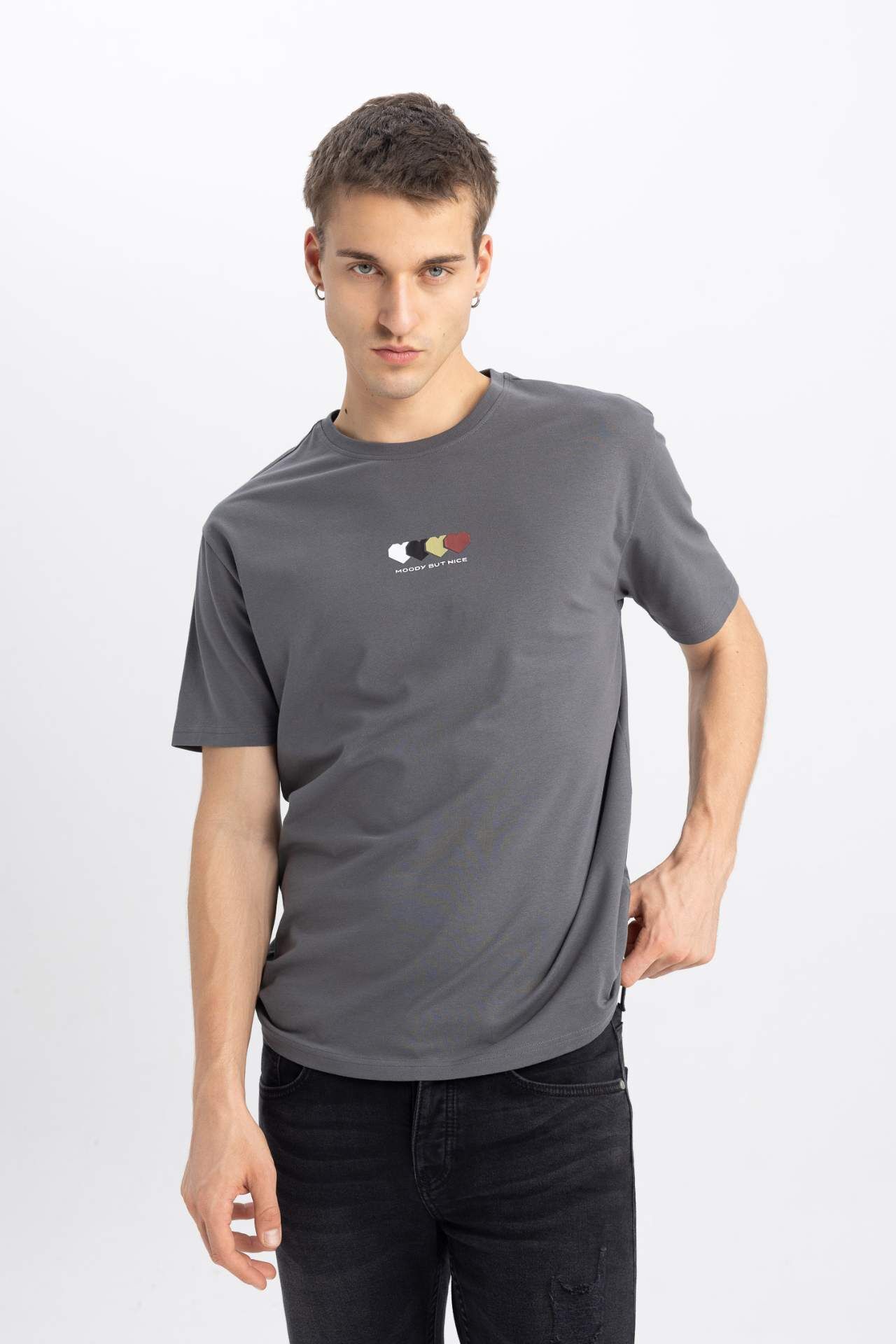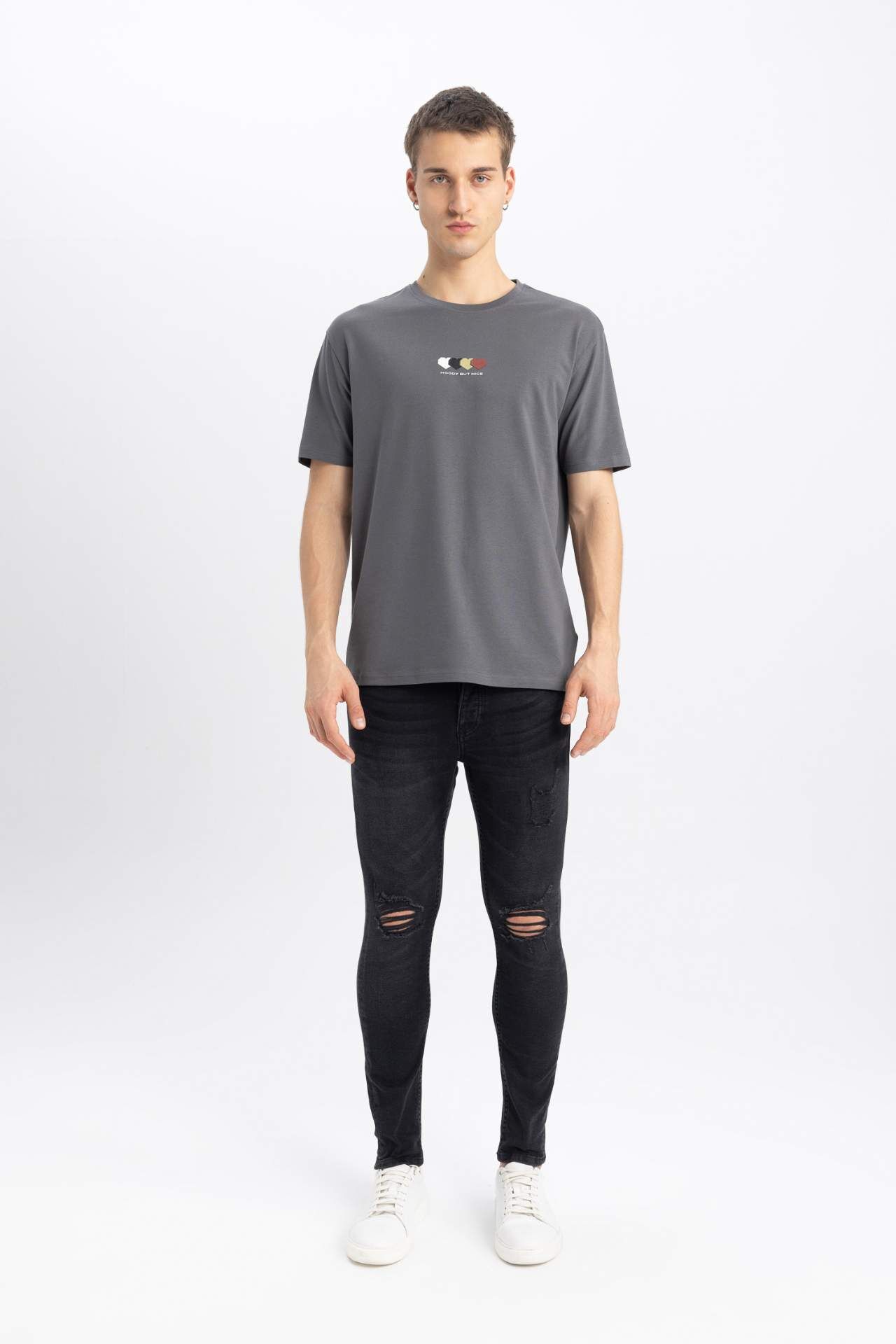 DeFactoFit Regular Fit Bisiklet Yaka Baskılı Tişört B5076AX24SPGR474