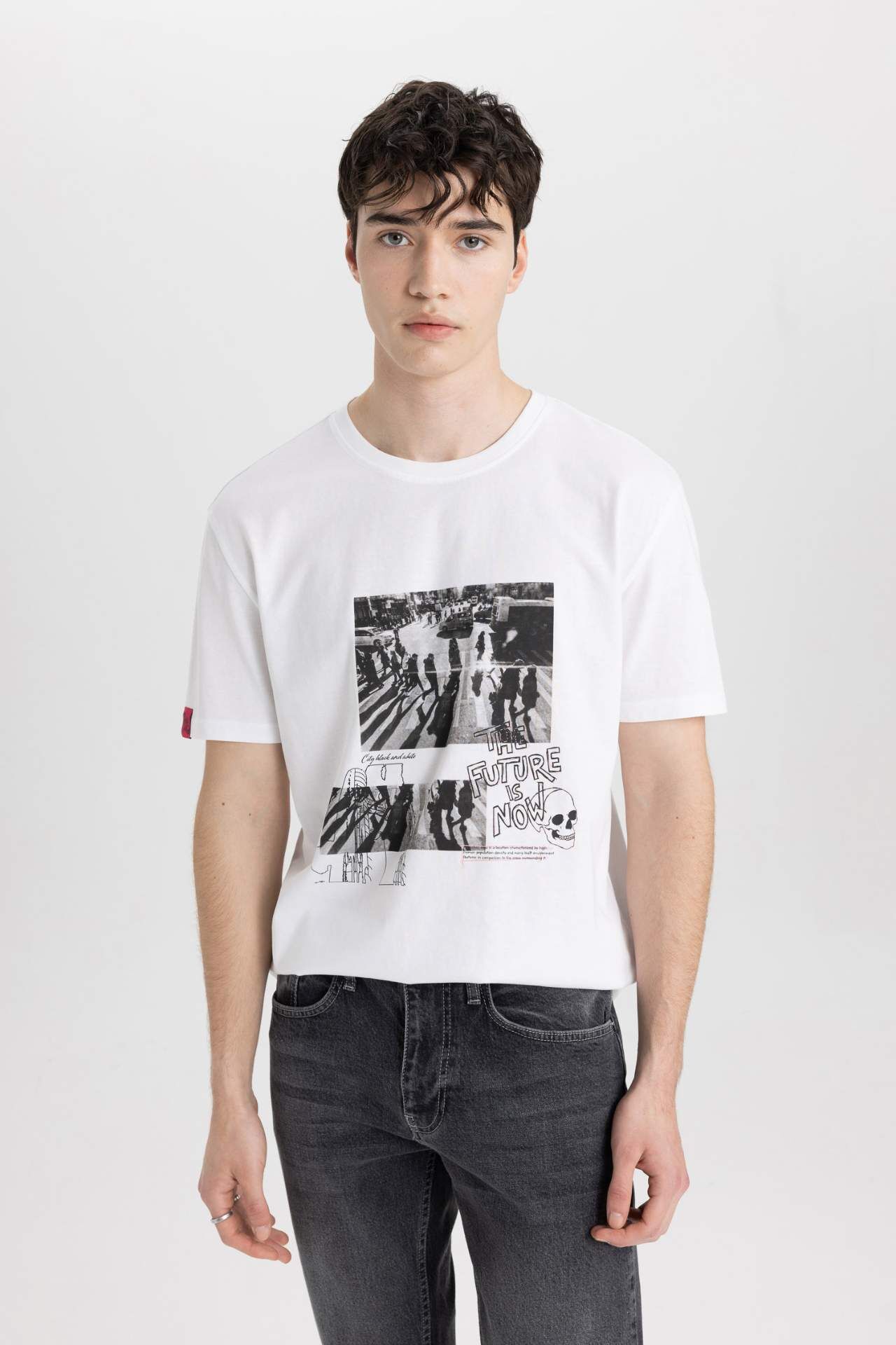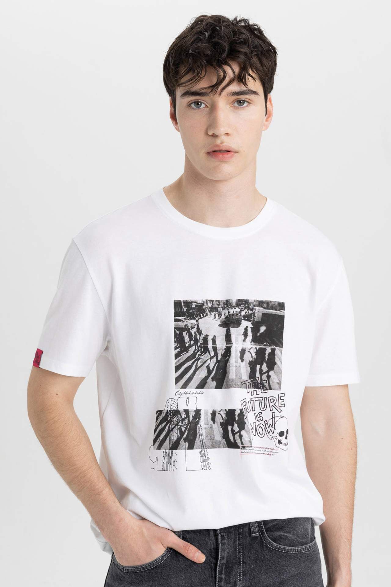 DeFactoFit Regular Fit Bisiklet Yaka Baskılı Tişört B9006AX24SMWT34