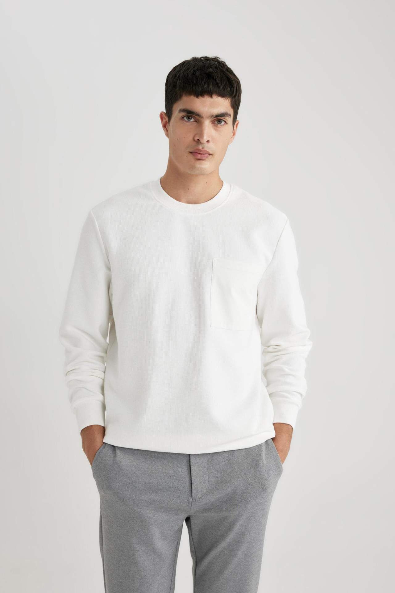 Yumuşak pamuklu Regular Fit Bisiklet Yaka Dokulu Sweatshirt, rahatlığı ve şıklığı bir araya getiriyor. Günlük kullanıma uygun olan bu sweatshirt, her tarza kolayca uyum sağlar. Bisiklet yaka detayı, tarzınıza modern bir dokunuş katıyor. Hem günlük hayatta hem de özel günlerde şık ve rahat bir görünüm elde etmek için ideal bir seçim. Şık detayları ve kaliteli kumaşı ile gardırobunuzun vazgeçilmezi olmaya aday. Pamuk 100%,Pamuk 100%