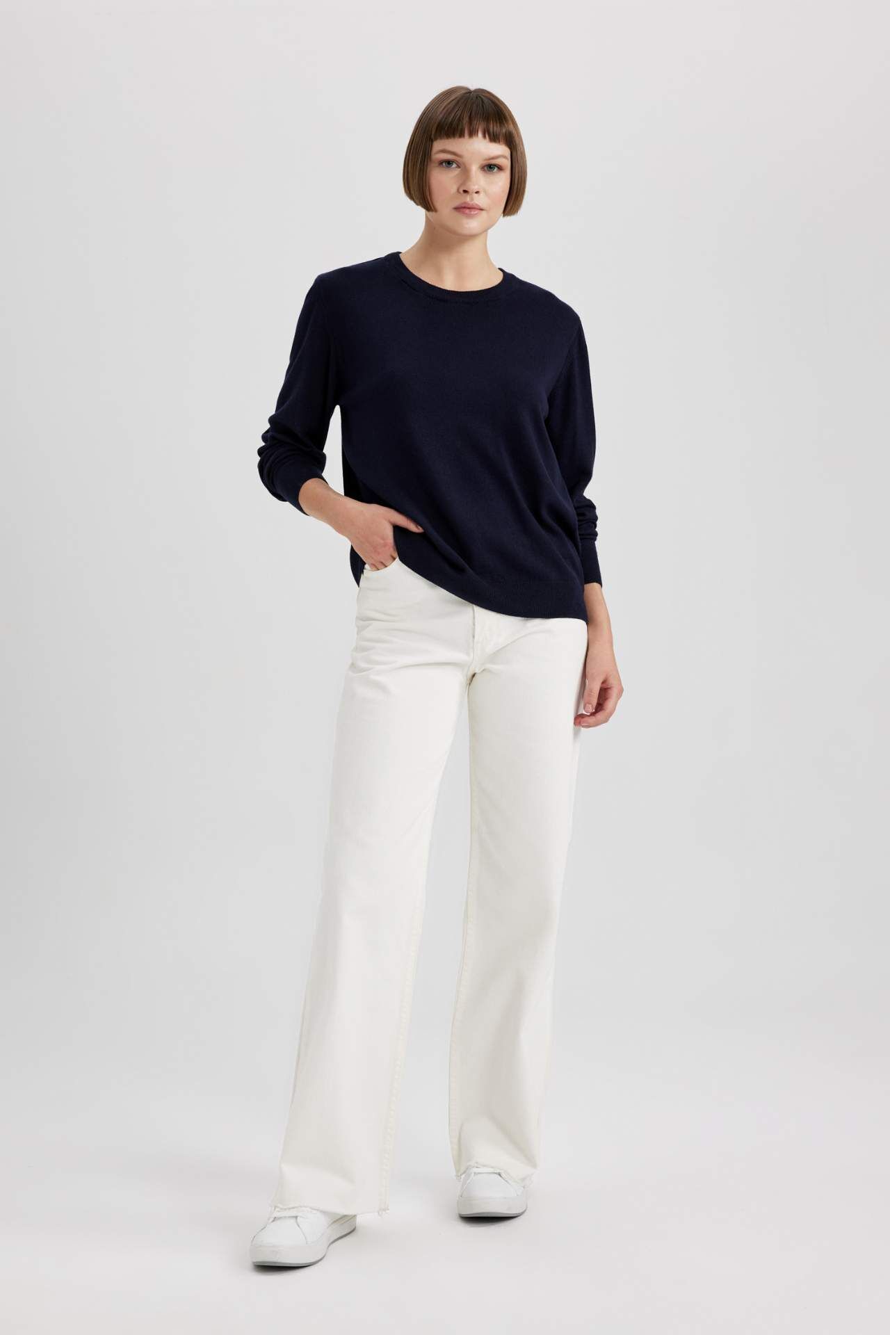 DeFactoFit Regular Fit Bisiklet Yaka Kazak