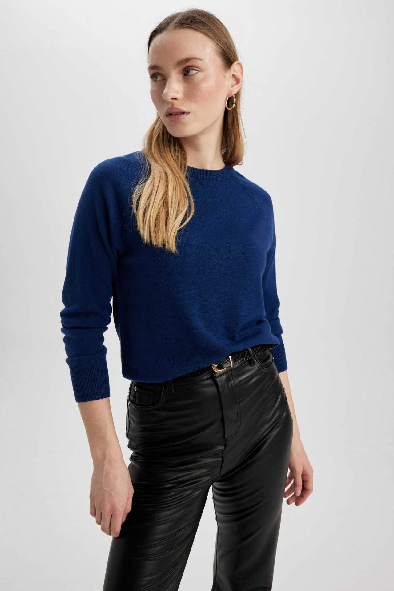 Bisiklet yaka, basic modeli ve regular fit rahat kesimi ile yüksek bel jean pantolon, mom fit jean, carrot fit pantolon, paper bag pantolon, midi etek, kalem etek, triko jogger pantolon, suni deri pantolon ve dokuma taytlarınızla kombinleyebileceğiniz, kış ve bahar aylarının en çok tercih edilen kullanışlı kombin parçası, yumuşak dokusuyla DeFacto Kadın Regular Fit Bisiklet Yaka Kazak. Akrilik 100% Manken Bedeni: Göğüs: 84 Boy: 1,79 Basen: 91 Bel: 63