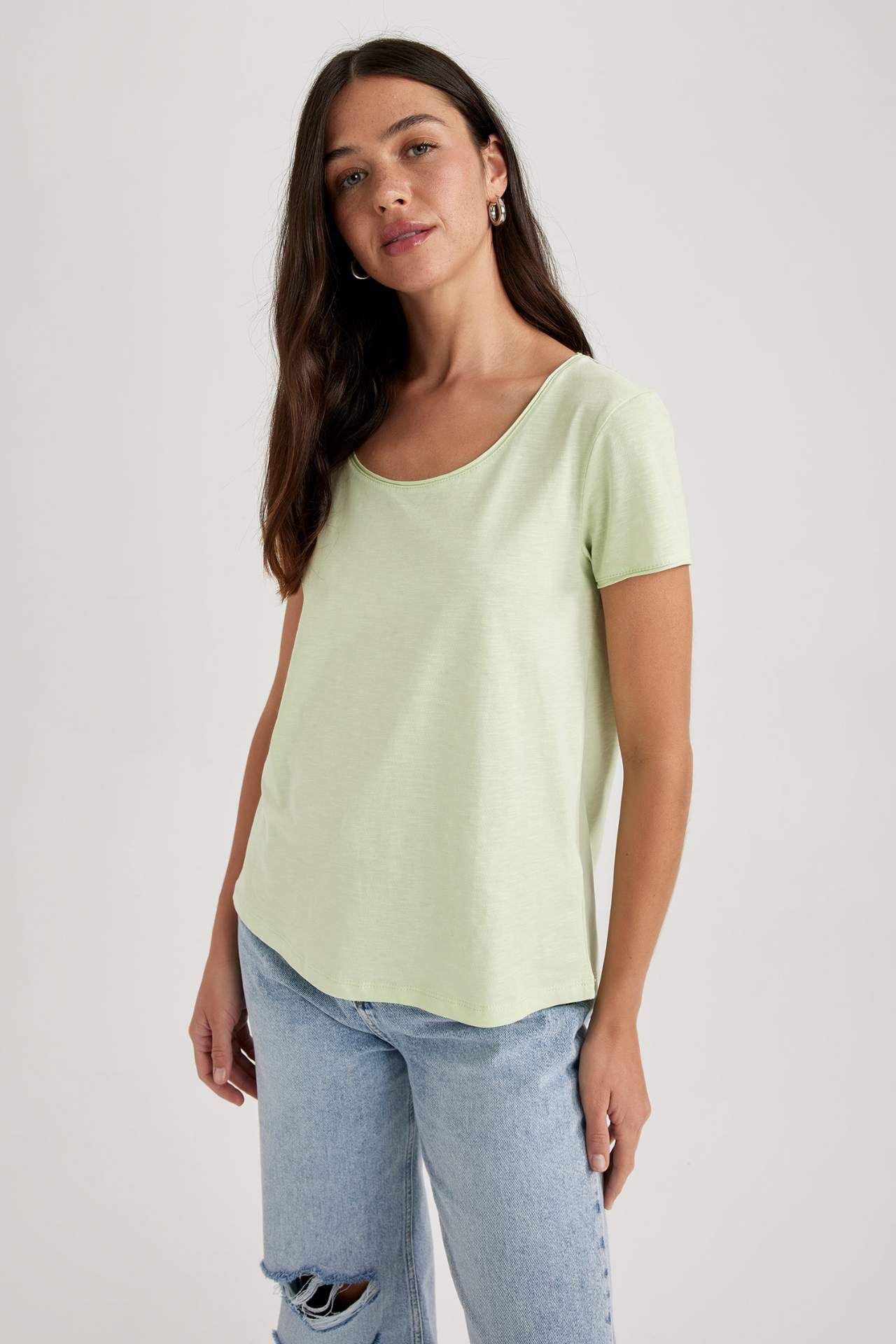Trend rahat tasarımı ve kaliteli pamuklu kumaşı ile her mevsim gardırobunuzda bulunması gereken, blazer gömleklerinizin içinde şehirli ve havalı, basic kombinlerinizde sınırsız ve rahat hissedebileceğiniz her gün bir çok kombininize dahil edebileceğiniz kullanışlı rengiyle DeFacto Kadın Regular Fit Bisiklet Yaka Kısa Kollu Tişört Pamuk 100%,Pamuk 100%
