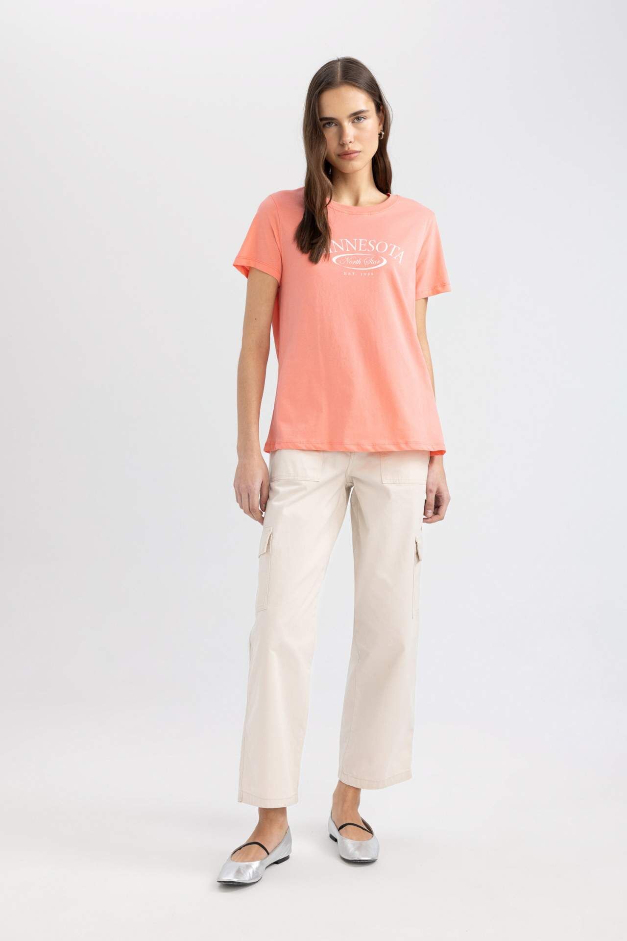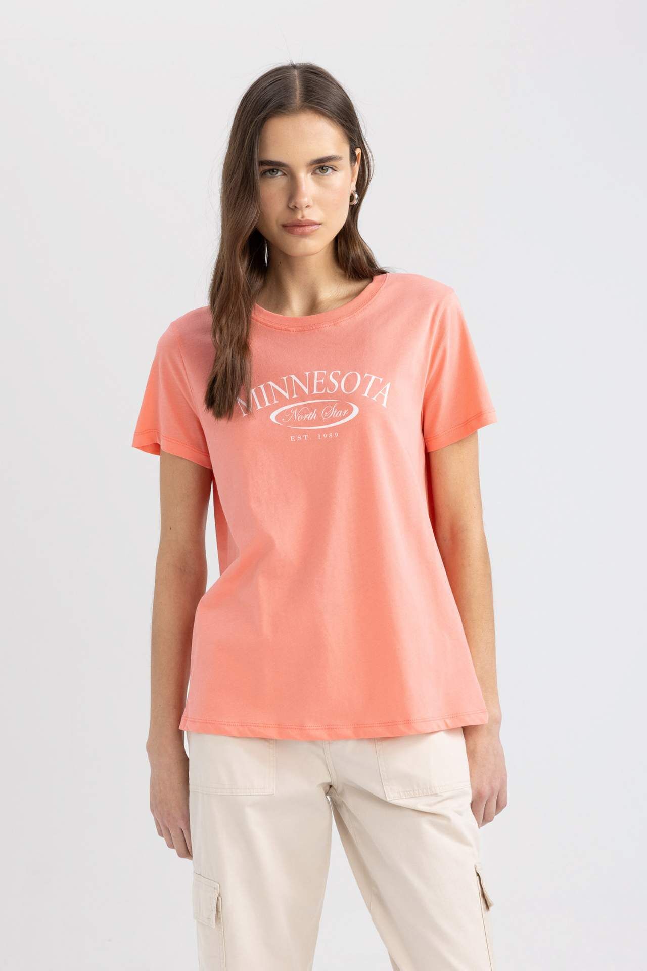 DeFactoFit Regular Fit Bisiklet Yaka Slogan Baskılı Kısa Kollu Tişört
