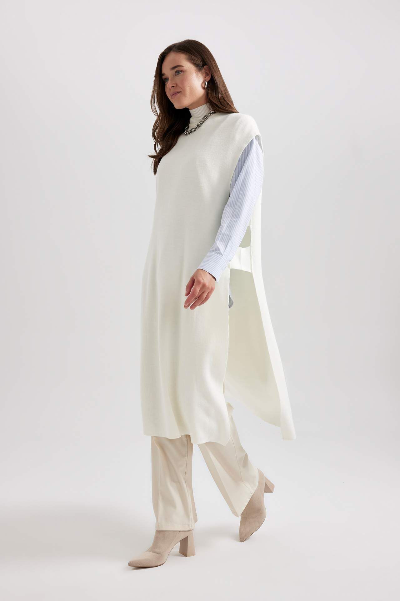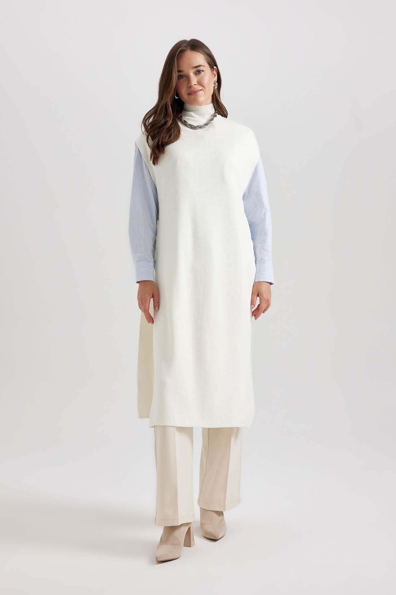 Rahat regular fit kesimi ve akrilik triko kumaşlı basic sade blazer tasarımı sayesinde ofiste ve tarz olmak istediğiniz her yerde üzerinizde fit bir görünüm sağlayan, havuç pantolon, yüksek belli jean pantolon, yüksek belli keten şort, jean etek, şort etek ve jean şortlarla kombinlendiğinde sadeliği ve şıklığı bütünleştiren, hem klasik hem de spor ayakkabıyla tamamlayabileceğiniz, kapaklı cep ve düğme detaylarıyla oldukça tarz DeFacto Kadın Regular Fit Bisiklet Yaka Yelek. Akrilik 100%