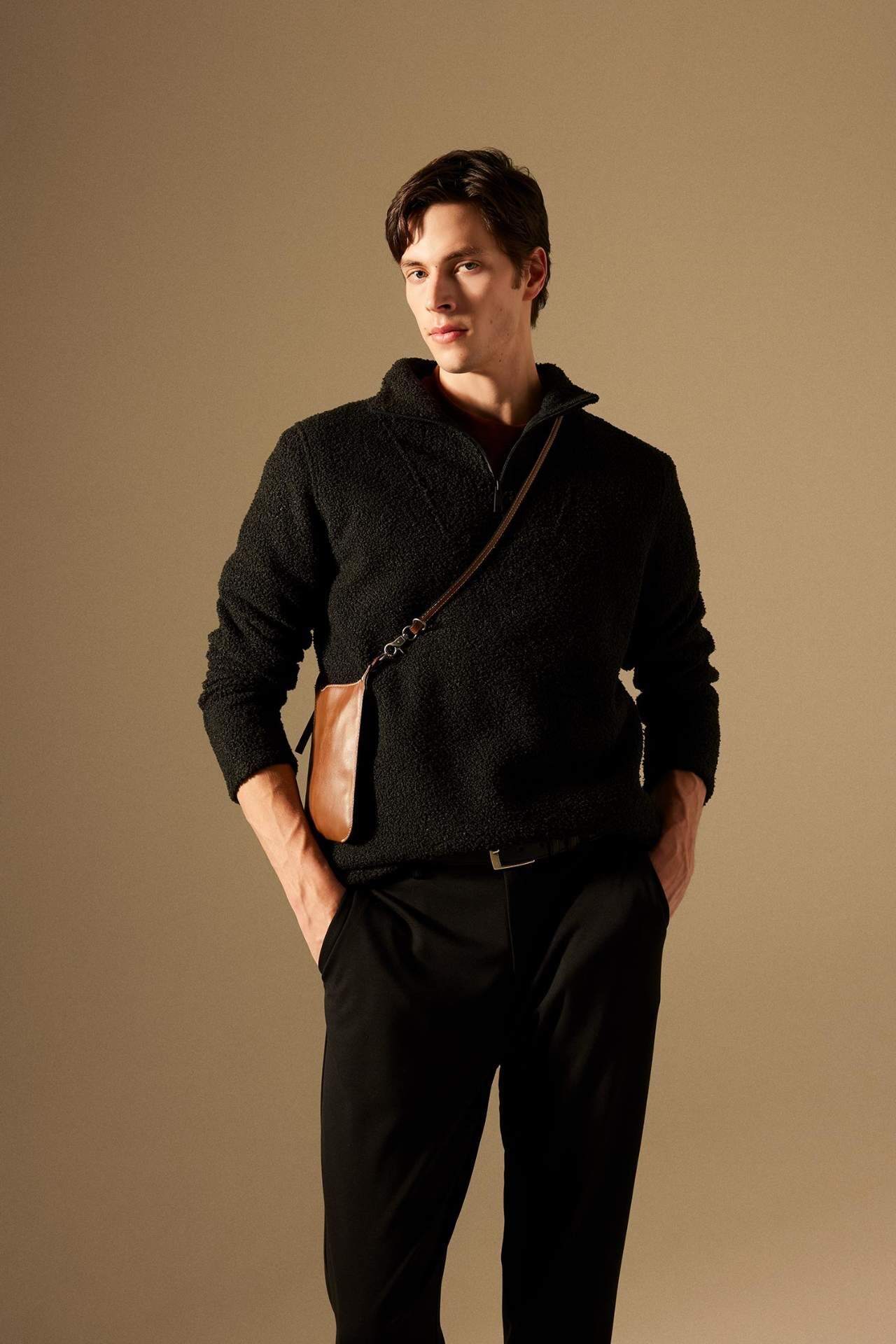 Bu Regular Fit Dik Yaka Pelüş Sweatshirt, rahatlığı ve şıklığı bir araya getiriyor. Yumuşak pelüş kumaşıyla sıcak tutarken, dik yaka tasarımıyla da modern bir görünüm sunuyor. Hem günlük hayatta hem de özel günlerde rahatlıkla kullanabileceğiniz bu sweatshirt, gardırobunuzun vazgeçilmez parçalarından biri olacak. Şıklığı ve konforu bir arada arayanlara özel olarak tasarlandı. Poliester 100%,Poliester 100%
