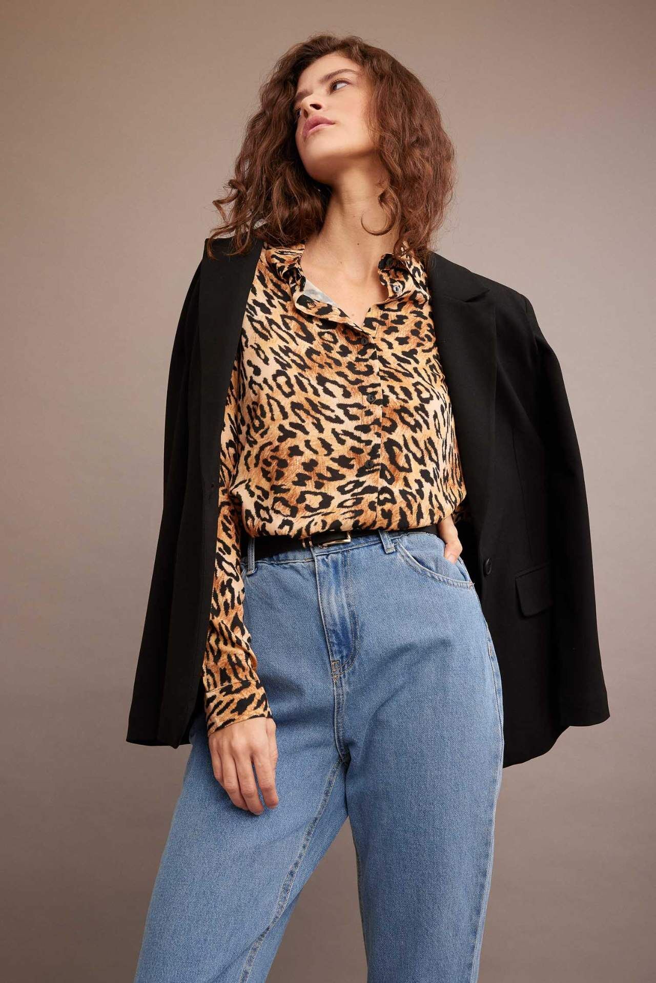 Leopar desenli, gömlek yaka, uzun kollu regular fit modeli ile şık bir tarzı olan, basic bodylerinizle kolayca kombinlenen etek ve pantolonlarınız için vazgeçilmeziniz olacak DeFacto Kadın Regular Fit Gömlek Yaka Leopar Desenli Uzun Kollu Gömlek. Viskoz 100%,Viskoz 100%,Viskoz 100% Manken Bedeni: Göğüs: 82 Boy: 1,75 Basen: 91 Bel: 60