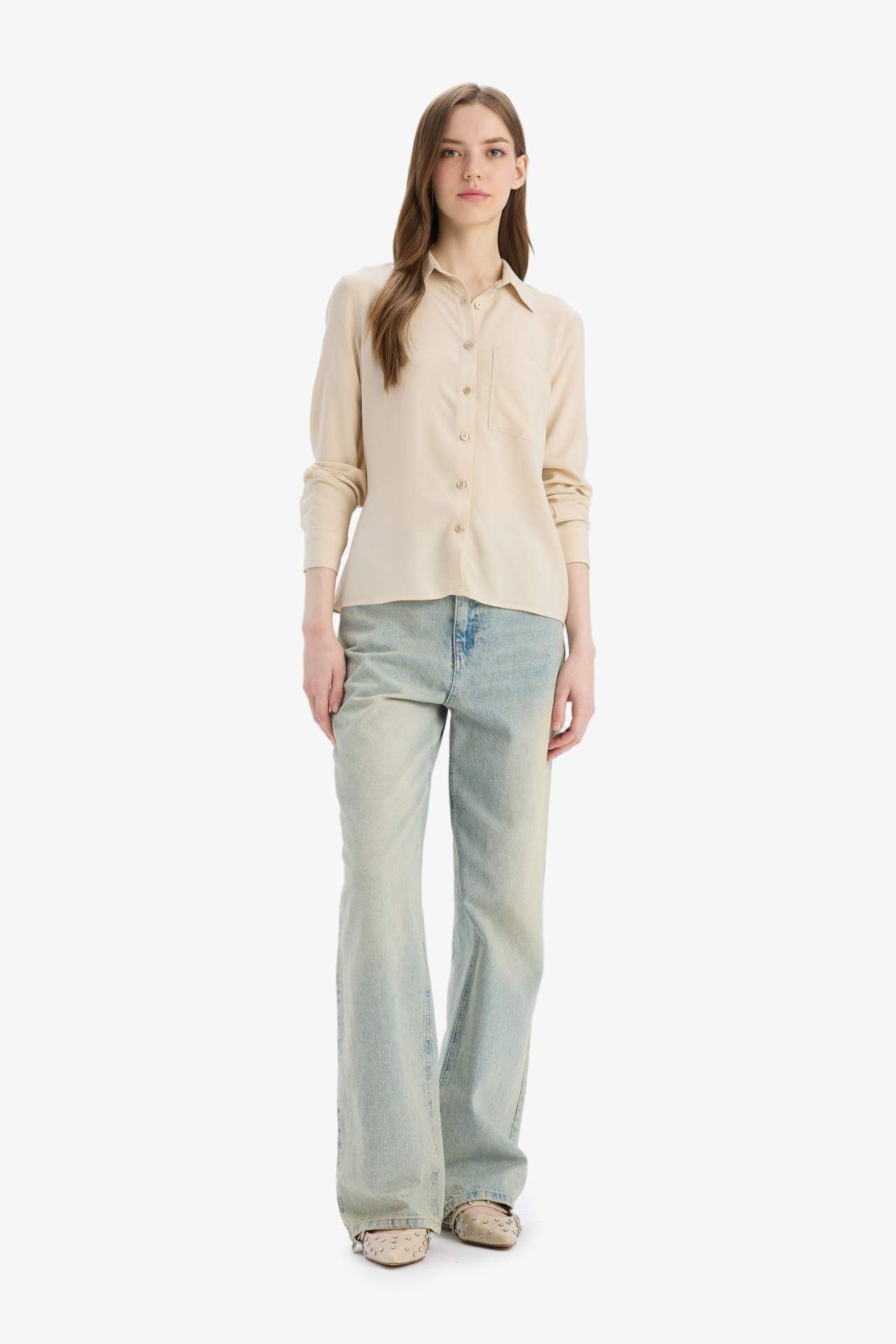 DeFactoFit Regular Fit Gömlek Yaka Uzun Kollu Gömlek