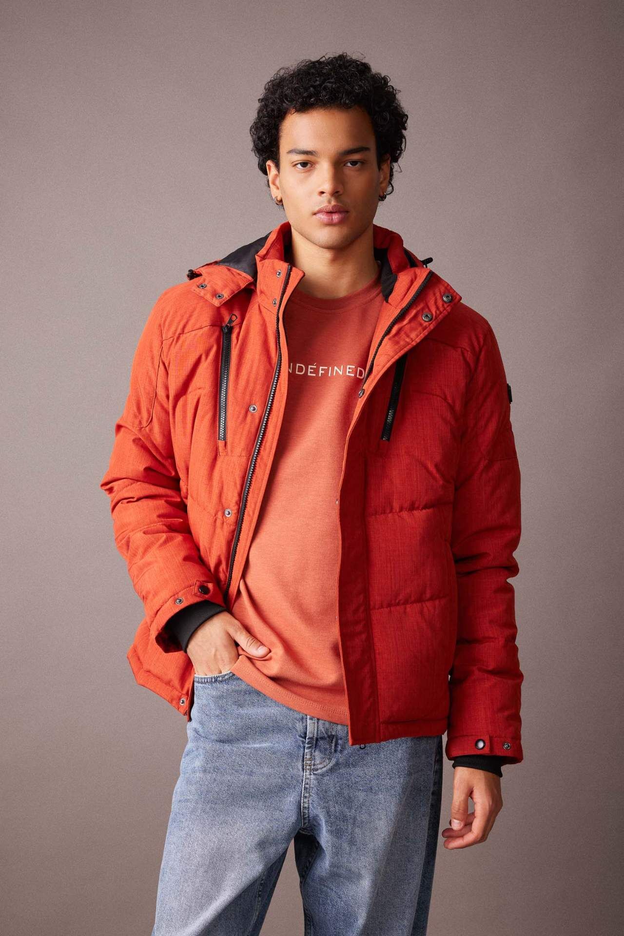 DeFactoFit Regular Fit Isı Yalıtımlı Warmtech Çıkarılabilir Kapüşonlu Polar Astarlı Su ve Rüzgar Geçirmez Şişme Mont