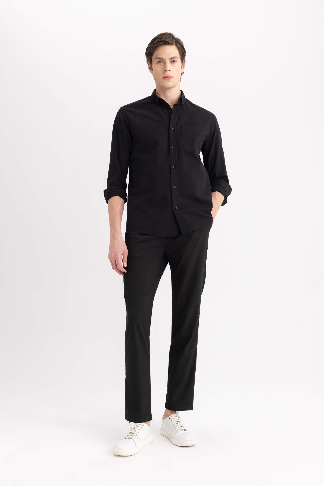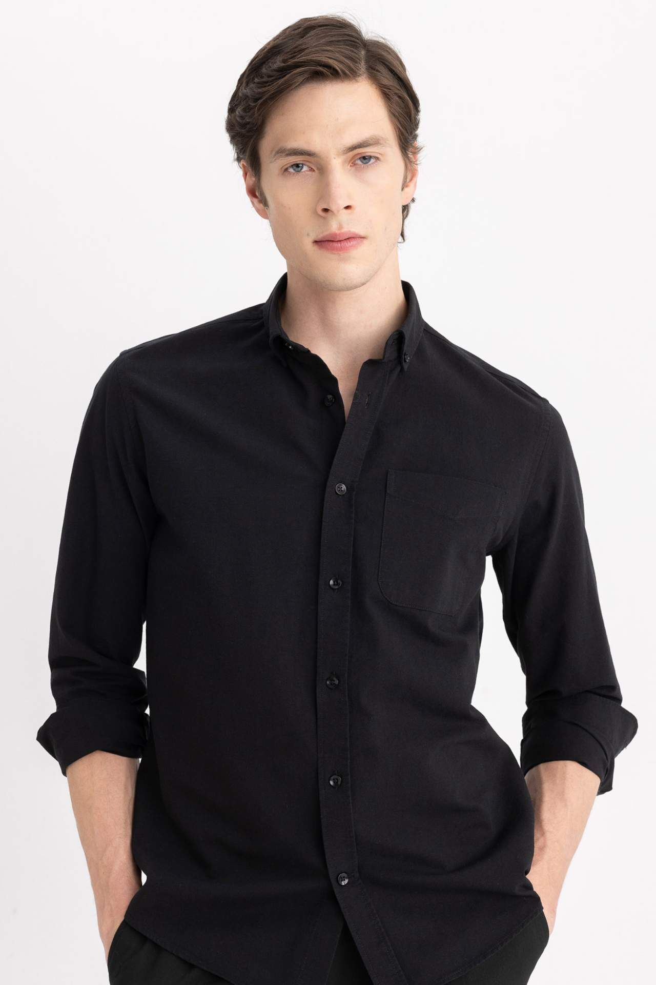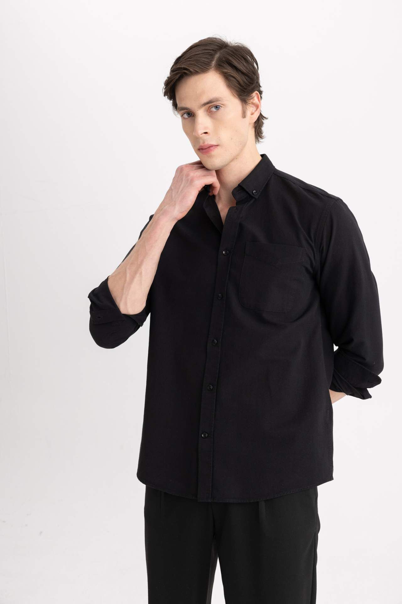DeFactoFit Regular Fit Polo Yaka Oxford Uzun Kollu Gömlek A8028AX24SPBK81