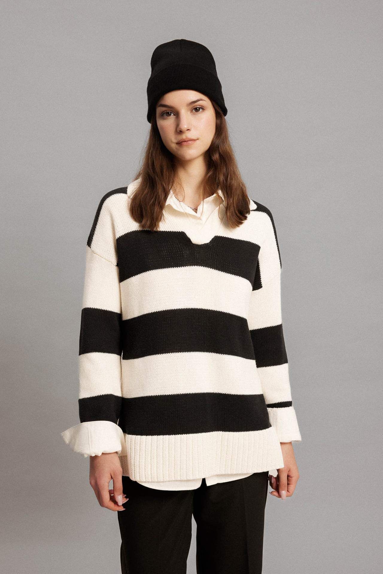 Regular Fit Çizgili Tunik, şık ve modern bir görünüm sunan bir giyim parçasıdır. Bu tunik, çizgili deseniyle dikkat çekerken, düz kesimiyle de rahat bir kullanım sağlar. Yüksek kaliteli kumaşıyla uzun ömürlü bir kullanım sunan bu tunik, her mevsimde tercih edilebilir. Şıklığı ve konforu bir arada sunan Regular Fit Çizgili Tunik, gardırobunuzun vazgeçilmez parçalarından biri olacak. Pamuk 58%,Poliester 42%,Pamuk 58%,Poliester 42% Manken Bedeni: Göğüs: 84 Boy: 1,74 Basen: 90 Bel: 60