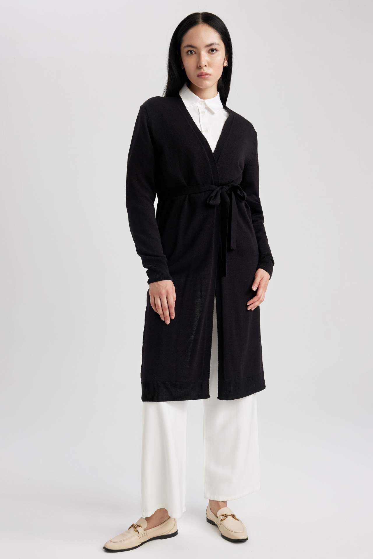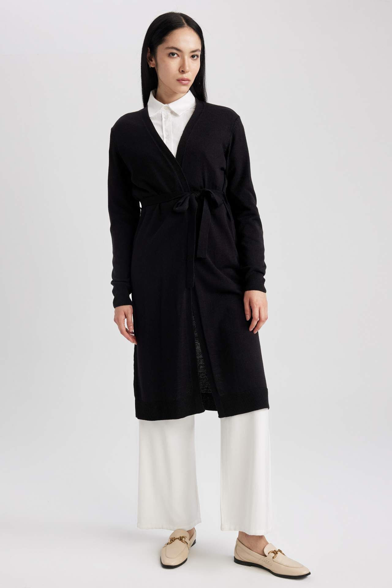 Şık modeli ve rahat kullanımı ile chino pantolonlarınızla kolayca kombinleyebileceğiniz kuşaklı midi boyu ve triko kumaşı ile sonbahar ve kış aylarında tercih edeceğiniz tesettür modasının en çok tercih edilen parçası olan Kadın DeFacto Kadın Regular Fit V Yaka Hırka. Akrilik 100% Manken Bedeni: Göğüs: 83 Boy: 1,8 Basen: 91 Bel: 62