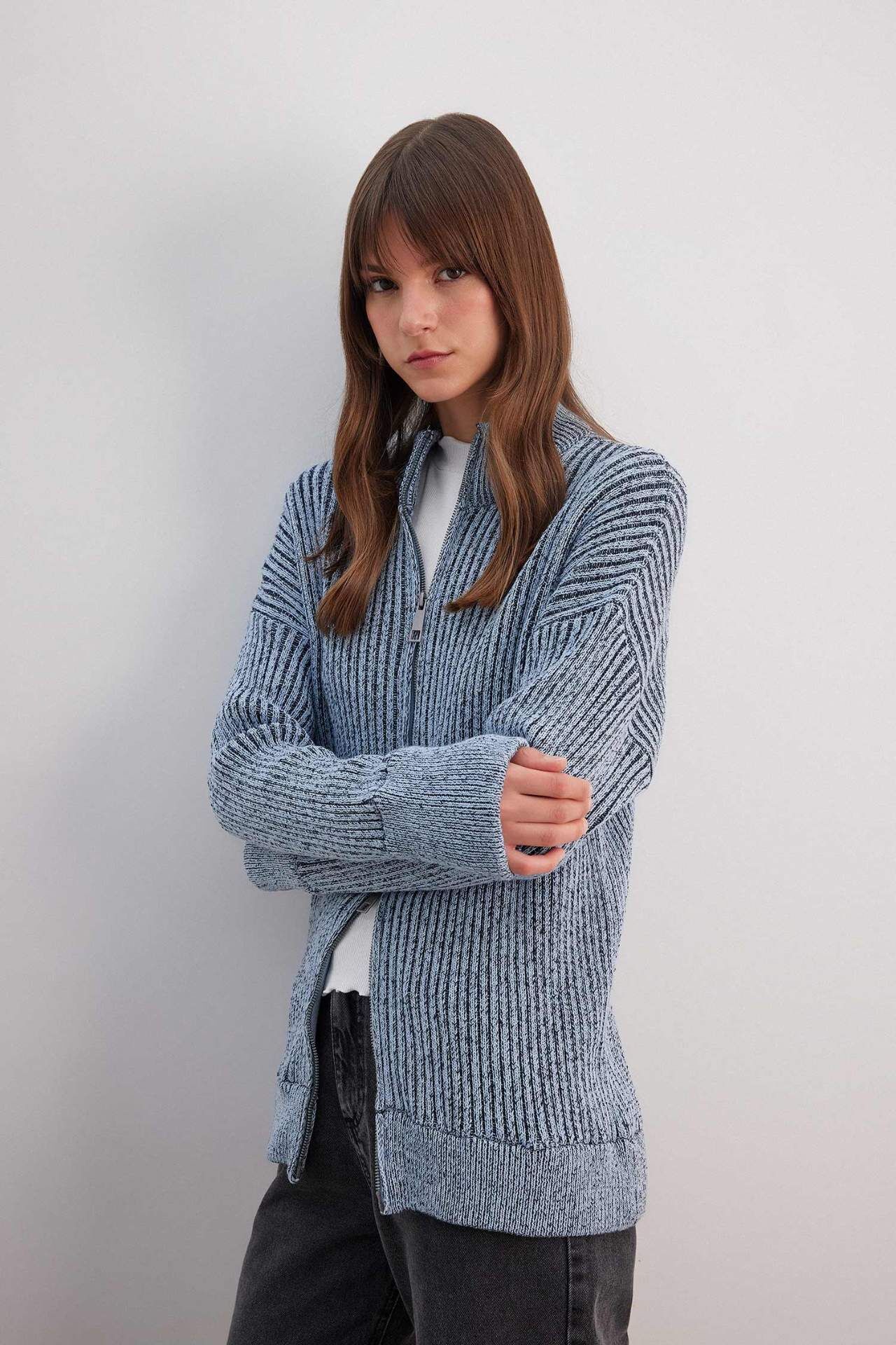 DeFactoFit Regular Fit Yarım Balıkçı Yaka Hırka