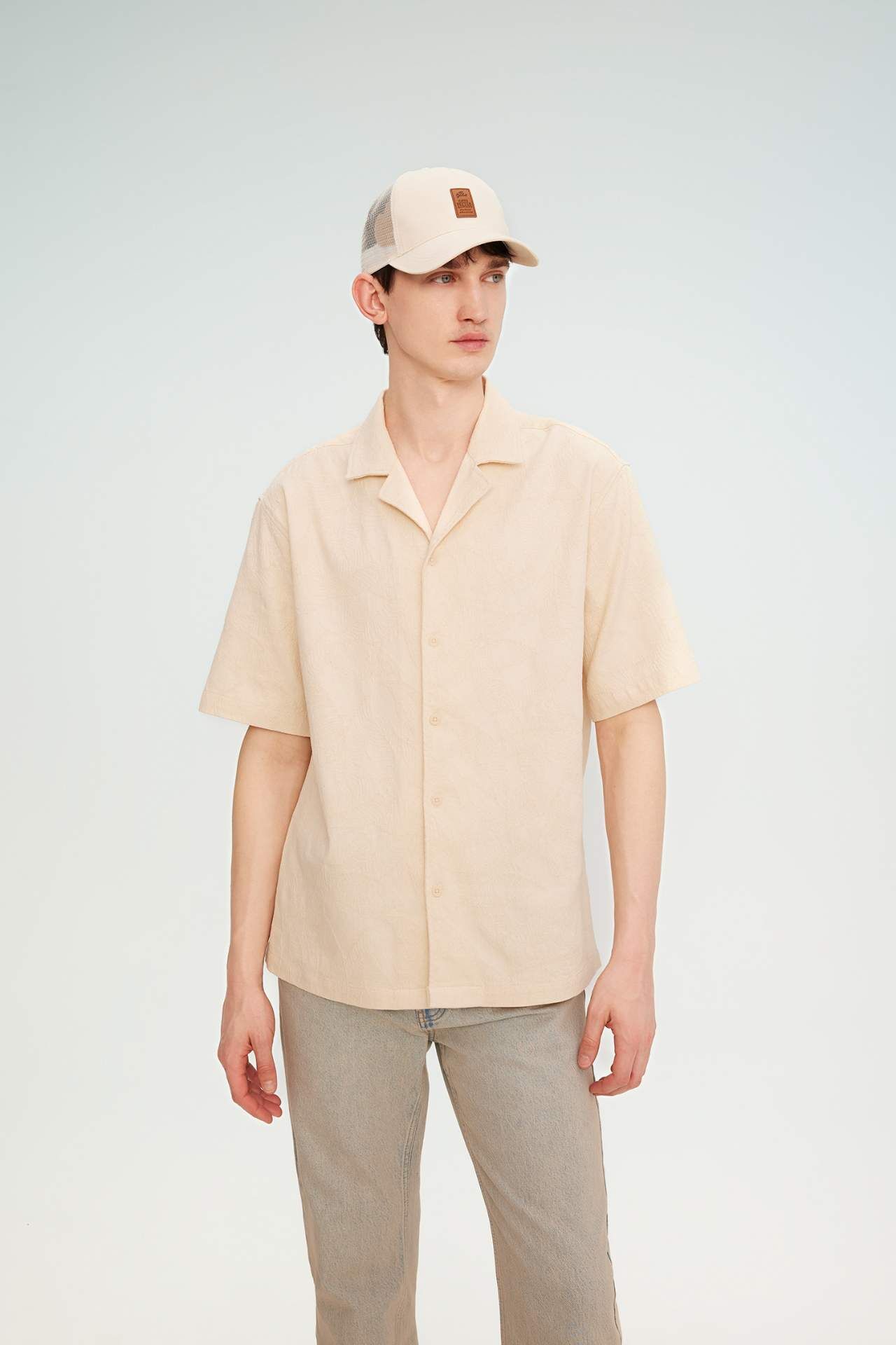 DeFactoFit Relax Fit Apaş Yaka Pamuklu Kısa Kollu Gömlek B7398AX24SMBG786