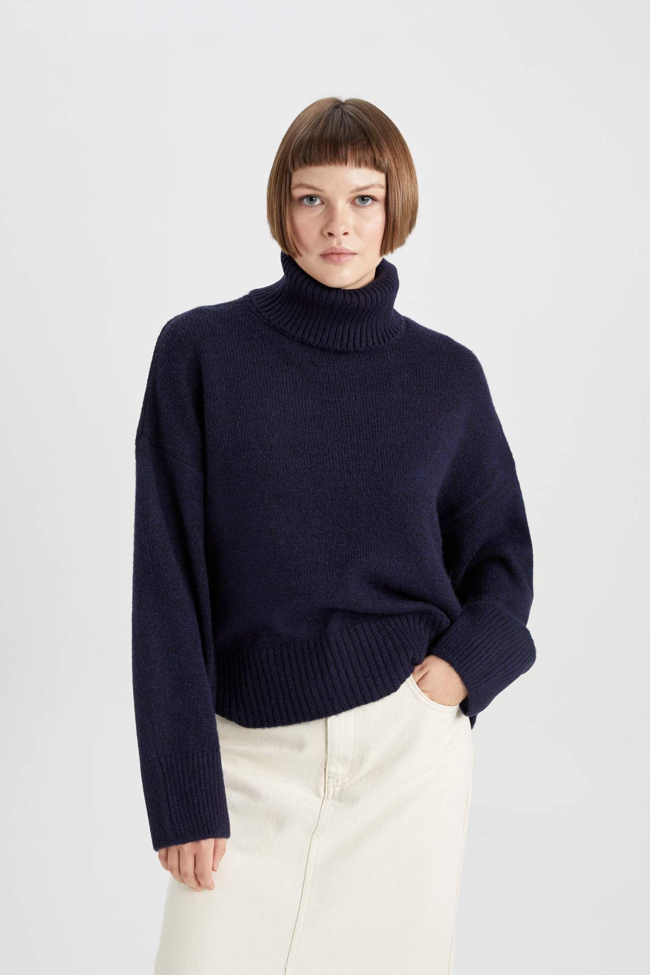 DeFactoFit Relax Fit Balıkçı Yaka Kazak