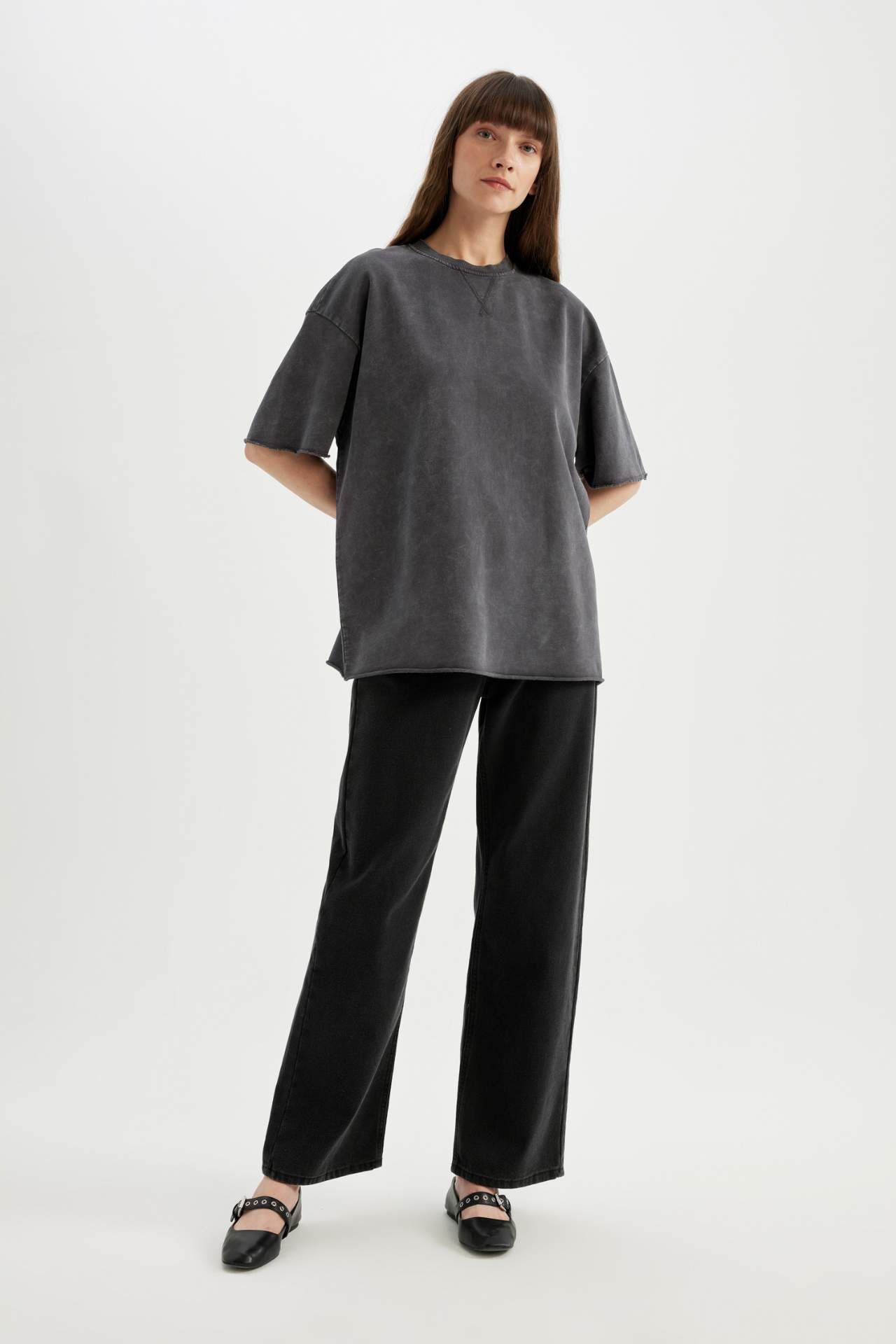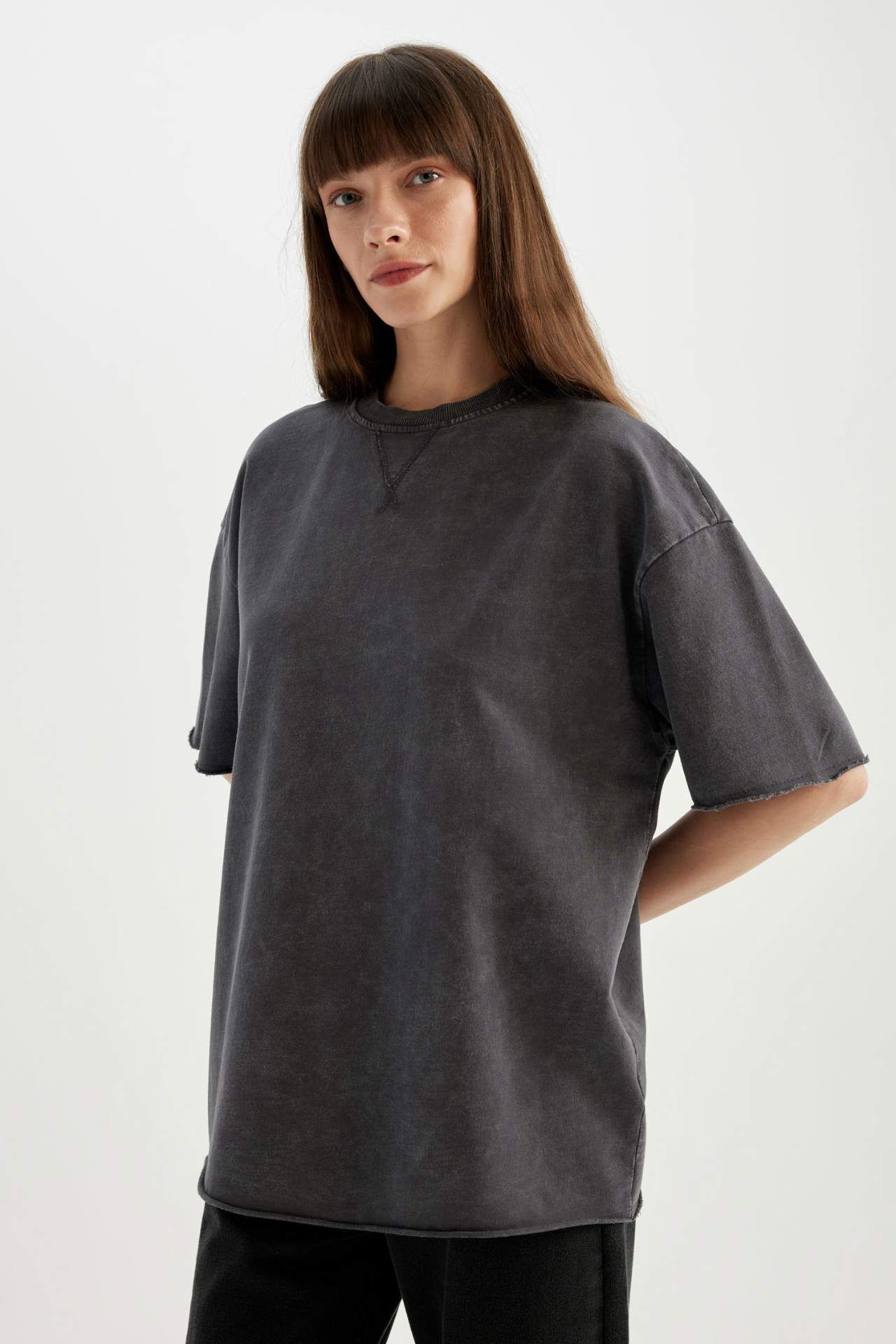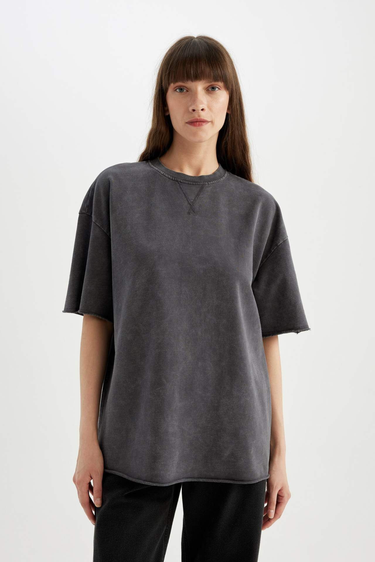 DeFactoFit Relax Fit Bisiklet Yaka Soluk Efektli Kısa Kollu Tişört C9587AX24SPAR191