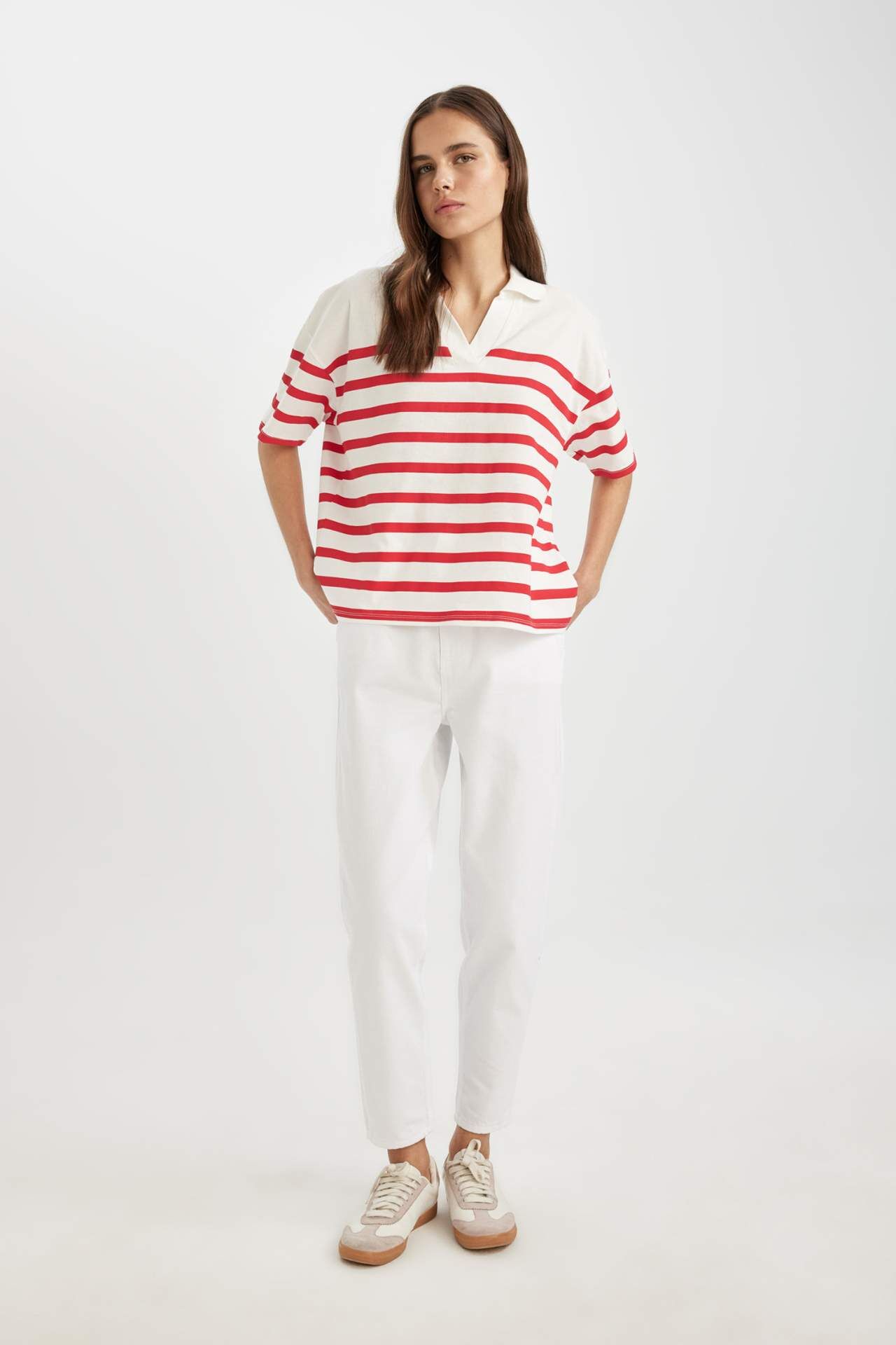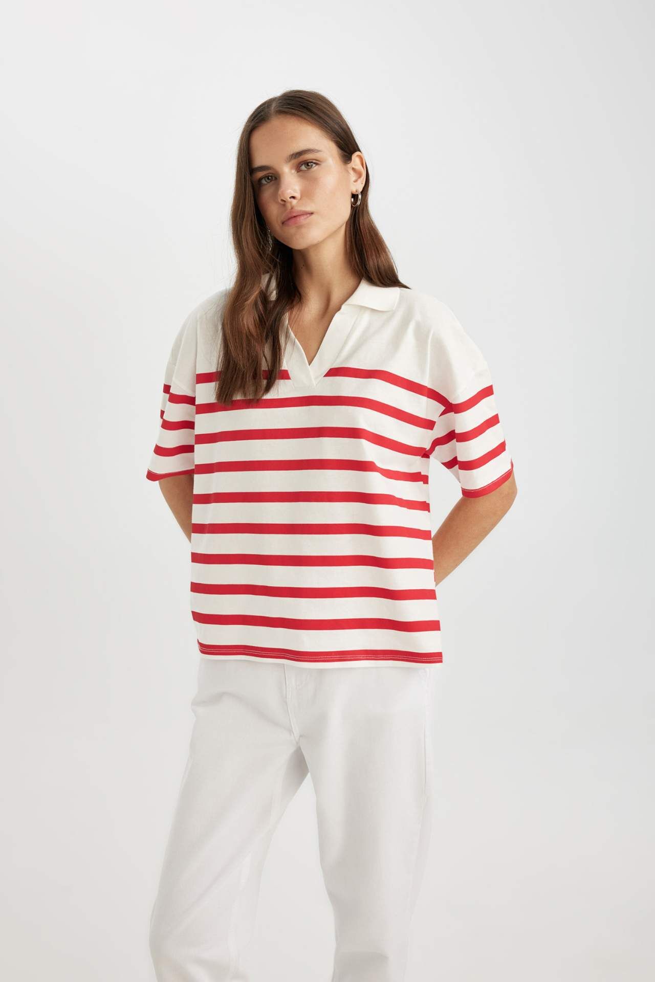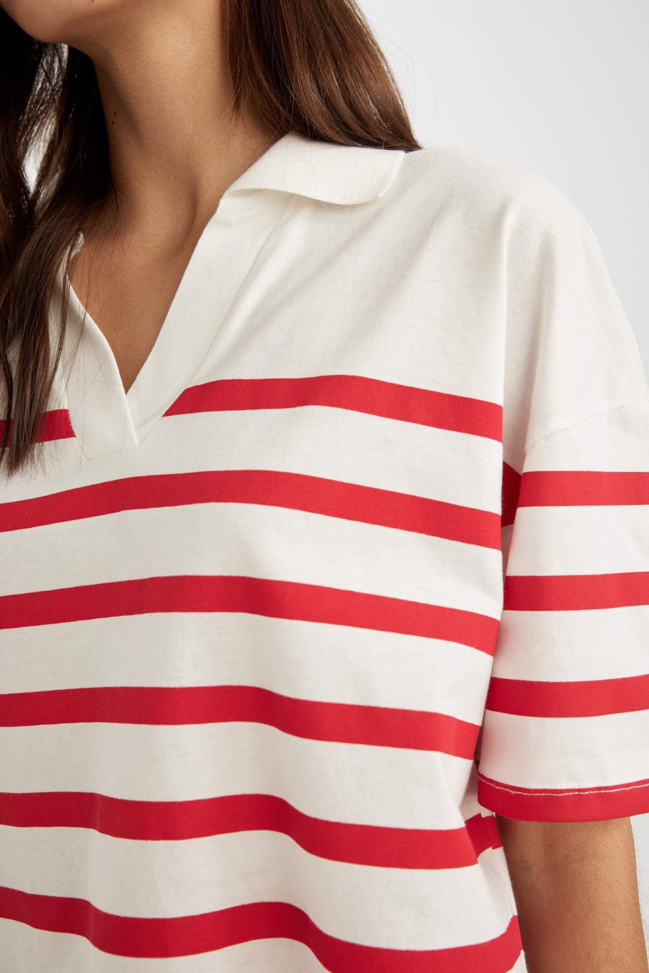 DeFactoFit Relax Fit Polo Yaka Çizgili Kısa Kollu Polo Tişört