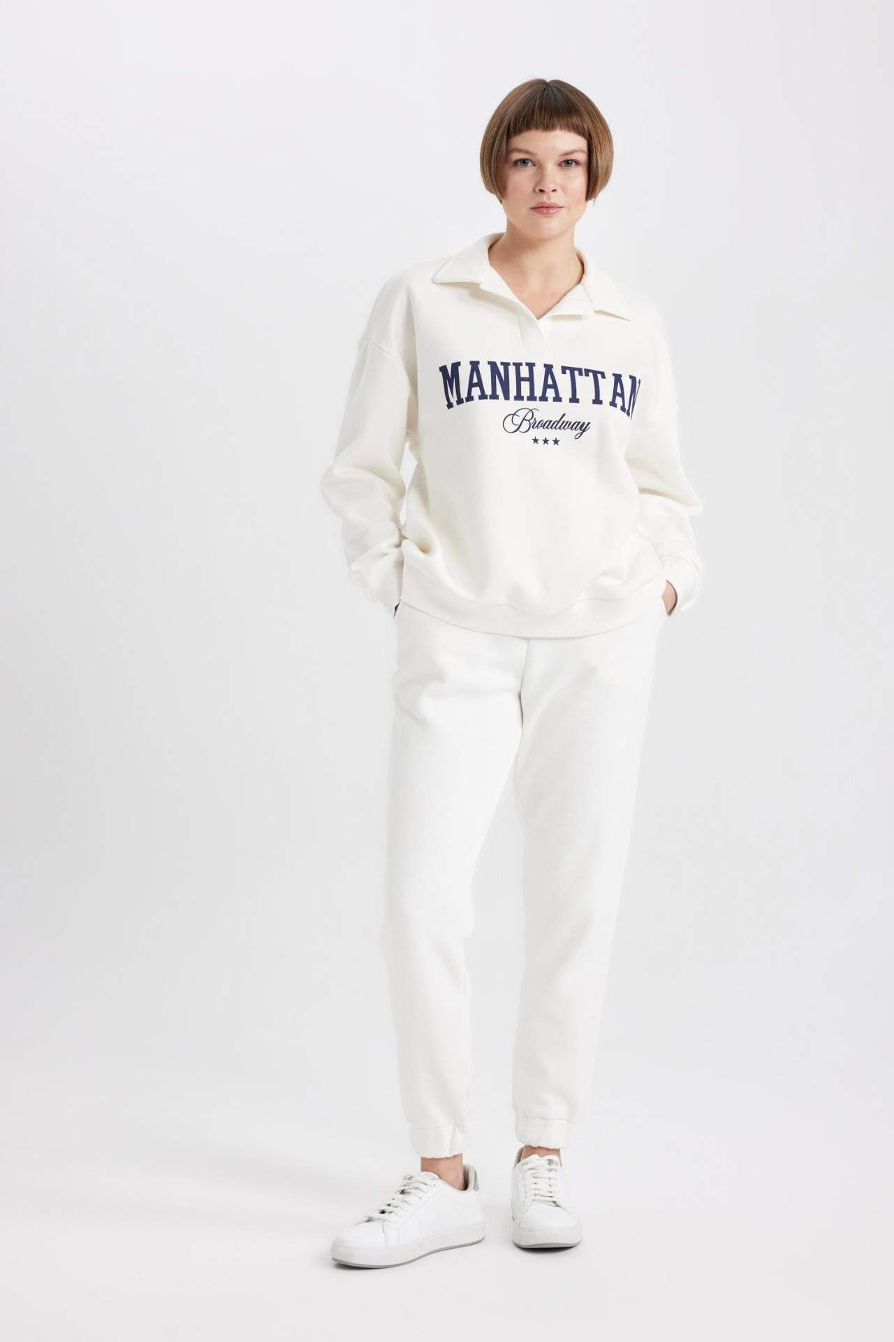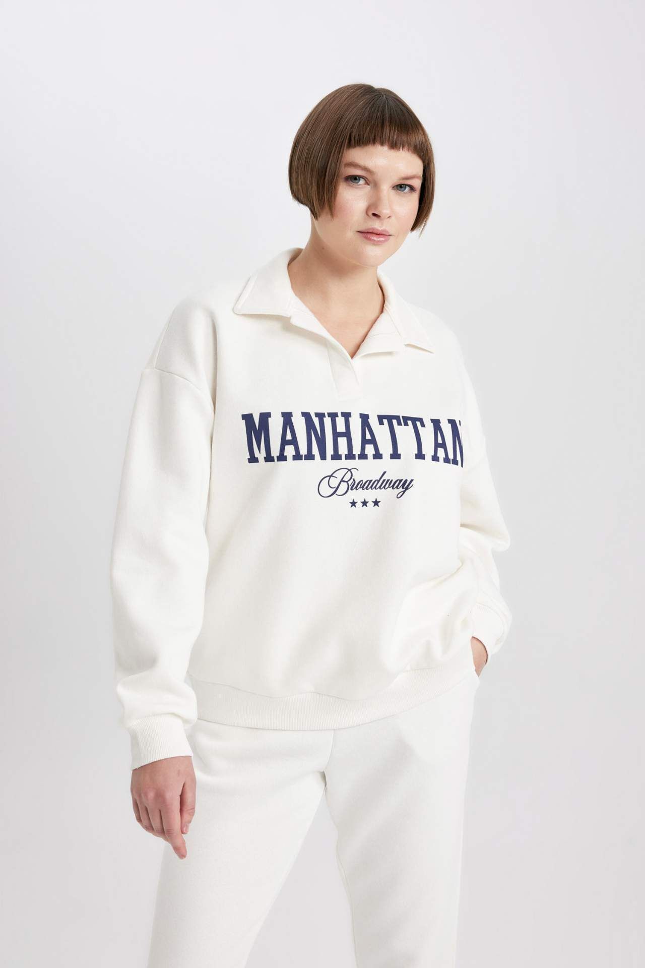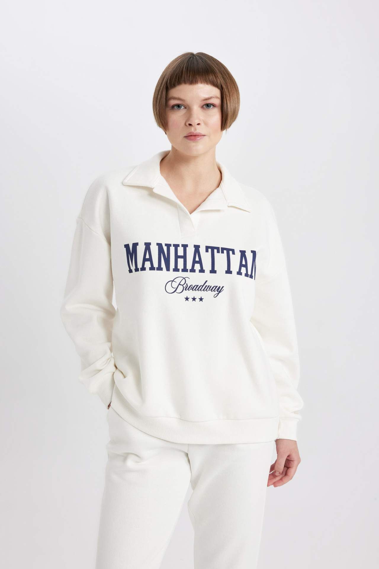 DeFactoFit Relax Fit Polo Yaka Kalın Sweatshirt Kumaşı Sweatshirt