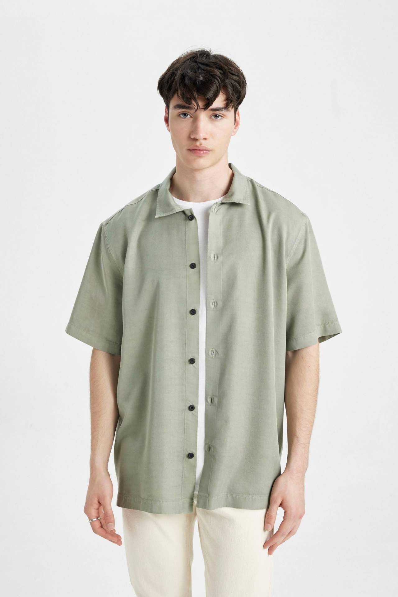 DeFactoFit Relax Fit Polo Yaka Pamuklu Kısa Kollu Gömlek C7394AX24SMGN931