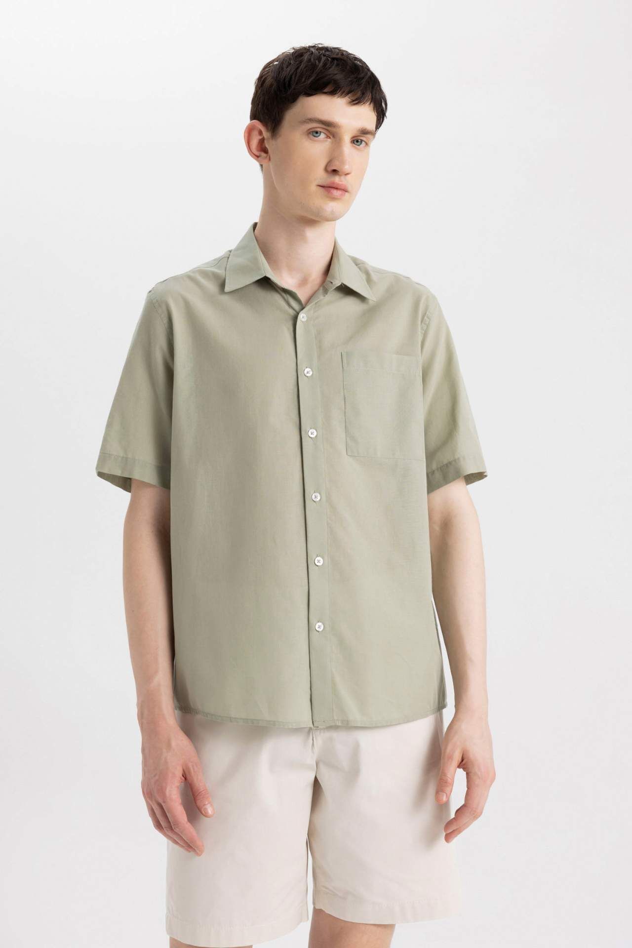 DeFactoFit Relax Fit Polo Yaka Pamuklu Kısa Kollu Gömlek C7598AX24SMGN497