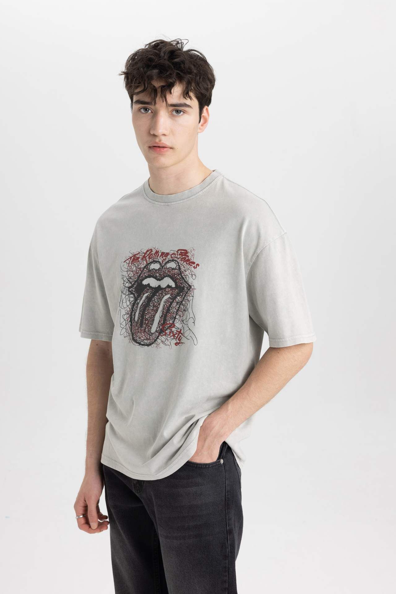 DeFactoFit Rolling Stones Comfort Fit Bisiklet Yaka Baskılı Kısa Kollu Tişört