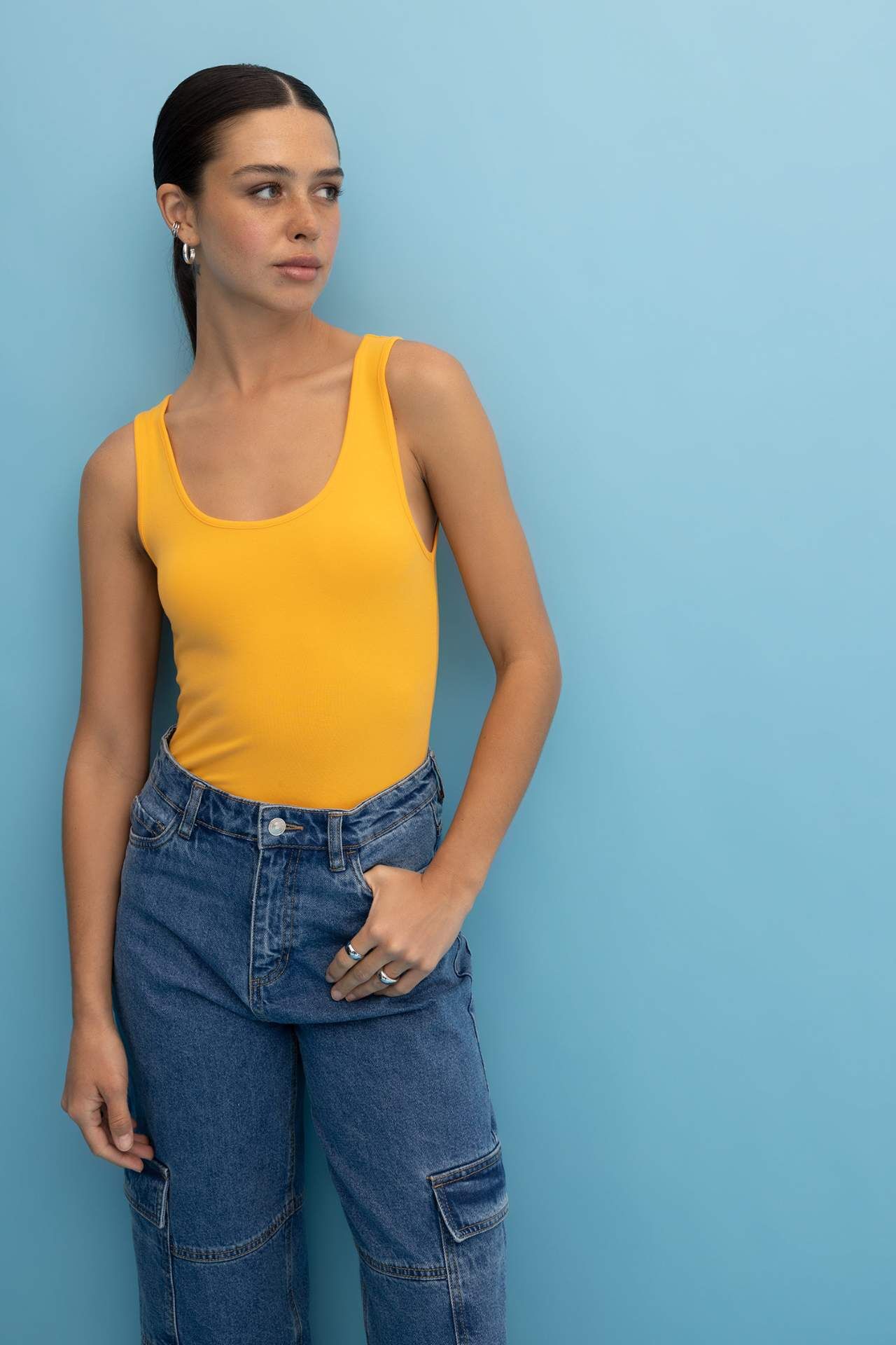 Pamuklu kumaşı, yuvarlak yaka, kolsuz slim fit modeli ile gün boyu konforlu kullanım sunan jean pantolon, şort ve eteklerinizle aynı zamanda blazer ceketlerinizle harika kombinler oluşturacağınız Defacto Kadın Slim Fit Bisiklet Yaka Atlet. Pamuk 95%,Elastan 5%,Pamuk 95%,Elastan 5% Manken Bedeni: Göğüs: 81 Boy: 1,75 Basen: 88 Bel: 60