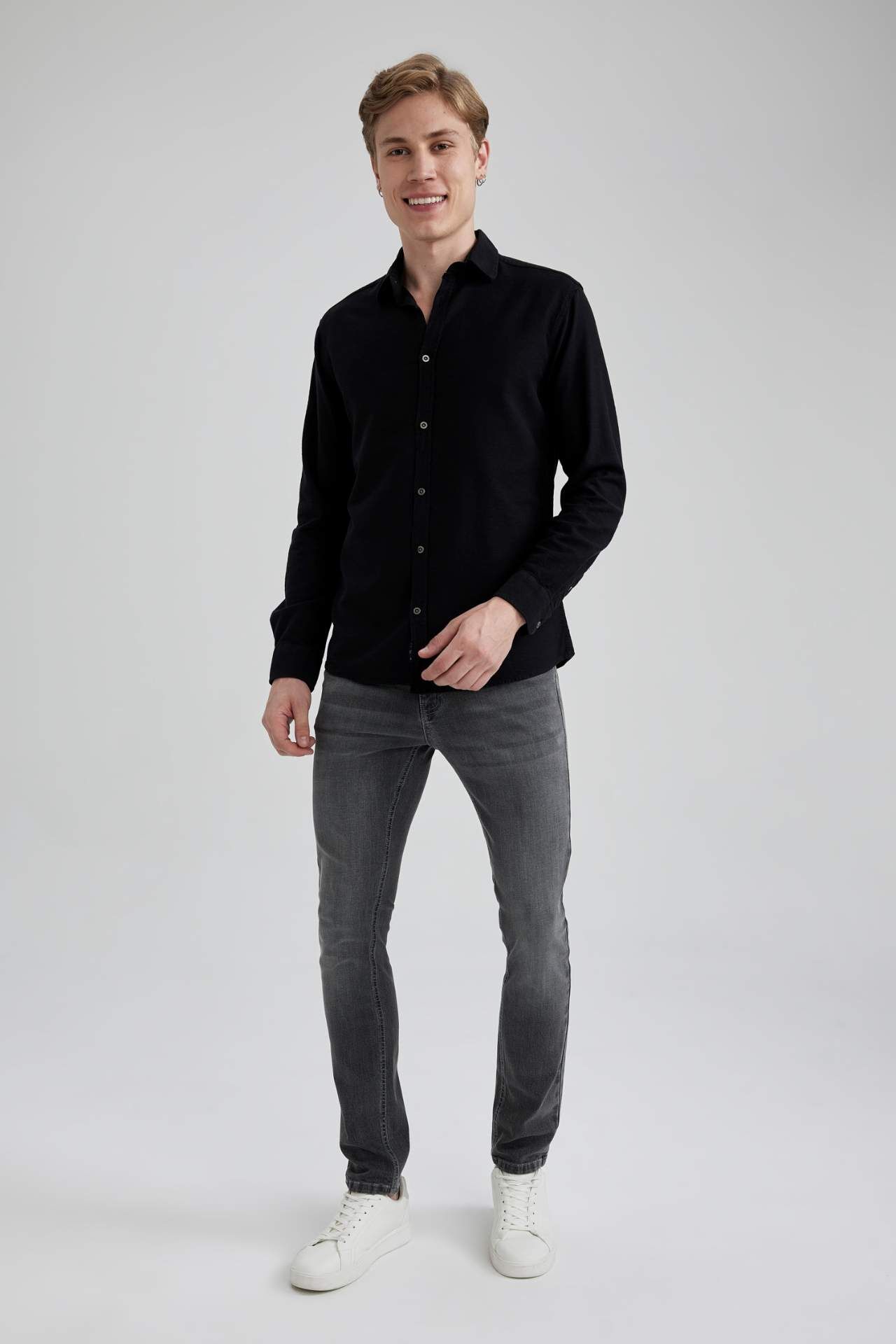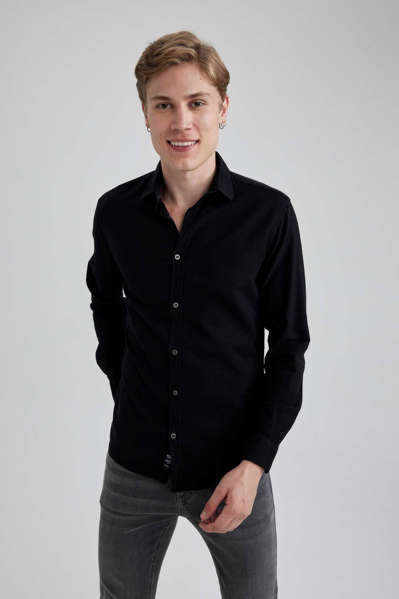 DeFactoFit Slim Fit Pamuklu Uzun Kollu Gömlek