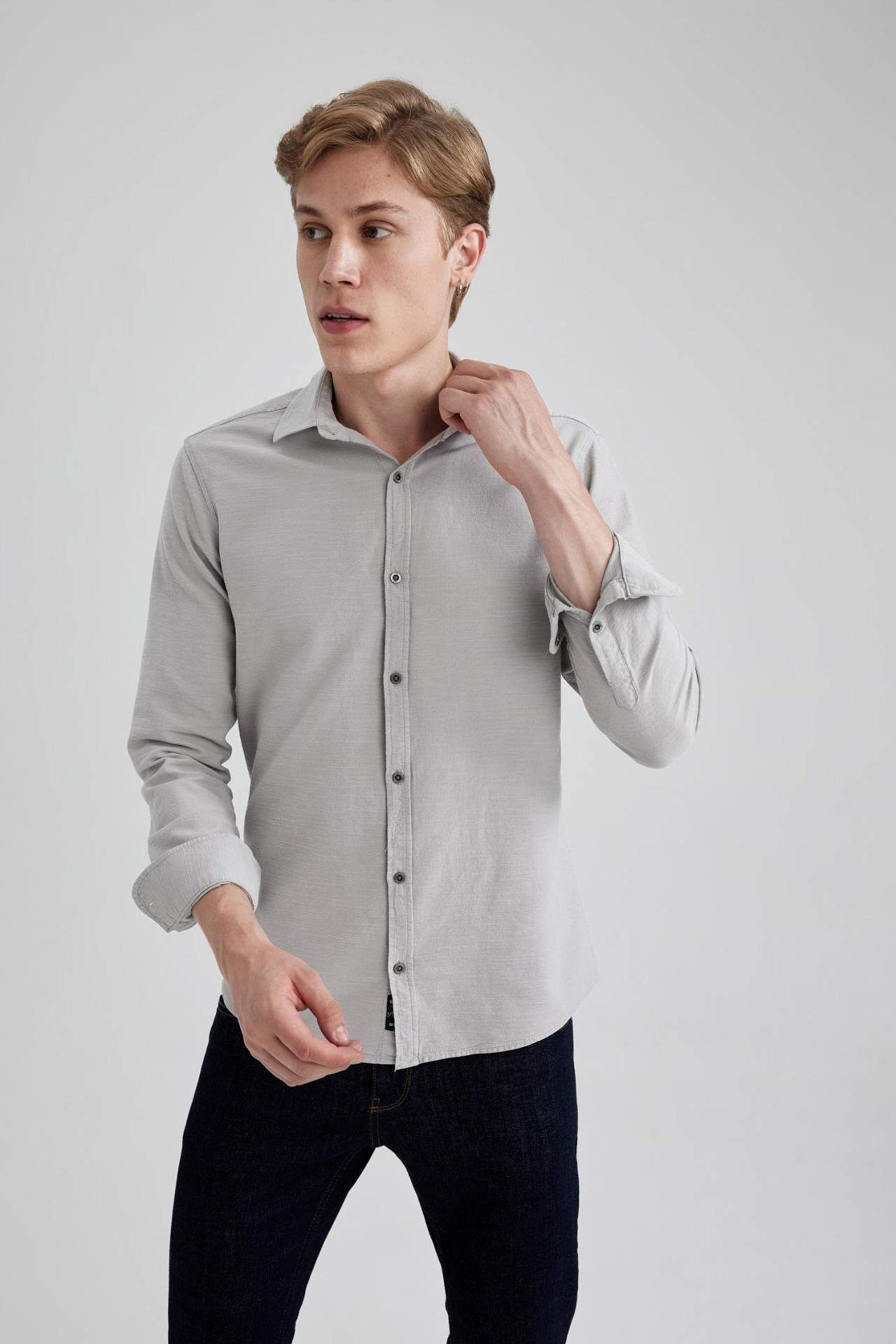 DeFactoFit Slim Fit Pamuklu Uzun Kollu Gömlek A4644AX23AUGR91