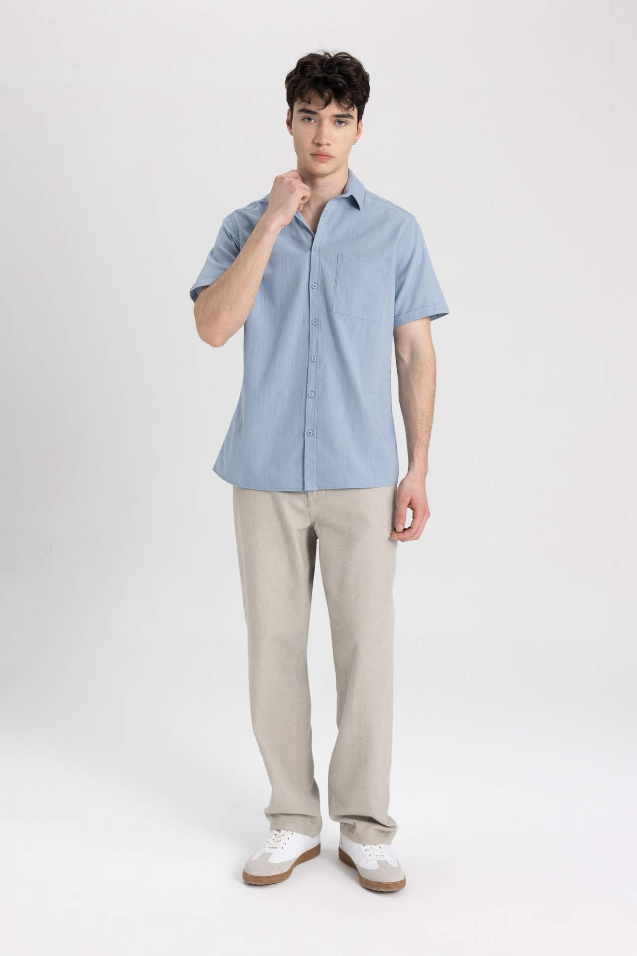 DeFactoFit Slim Fit Polo Yaka Kısa Kollu Gömlek R1706AZ24SMBE177