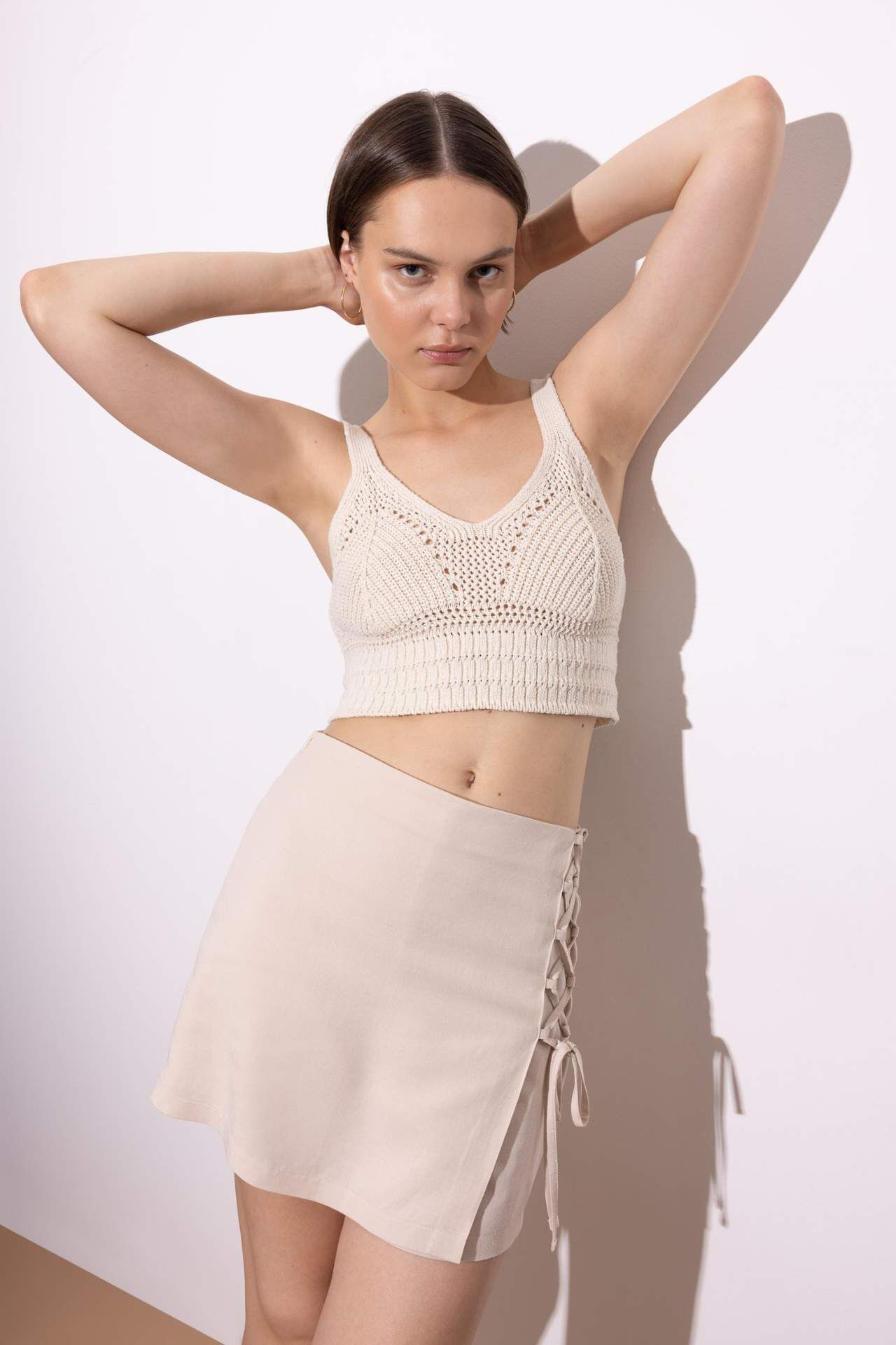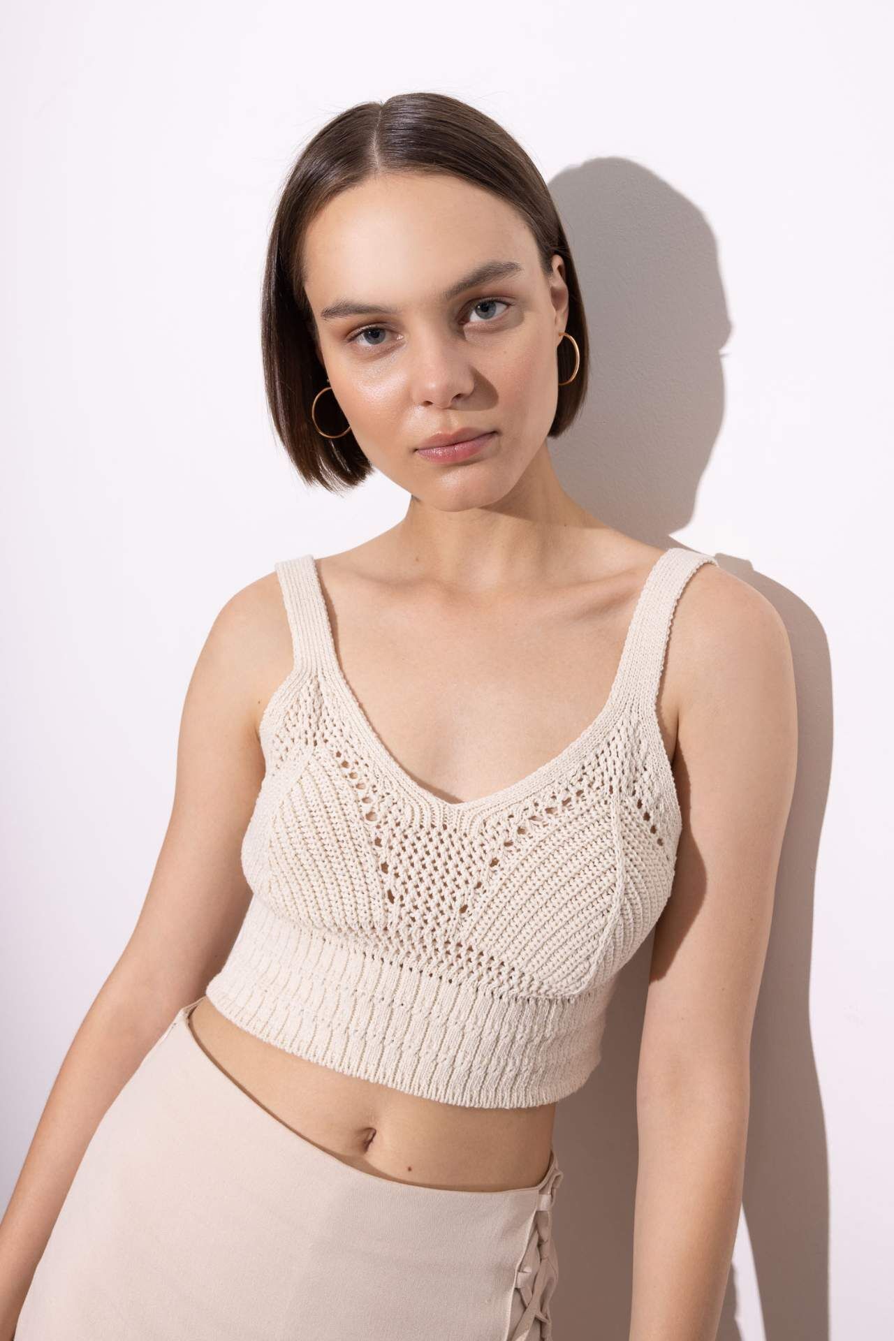 DeFactoFit Slim Fit V Yaka Atlet Ekru