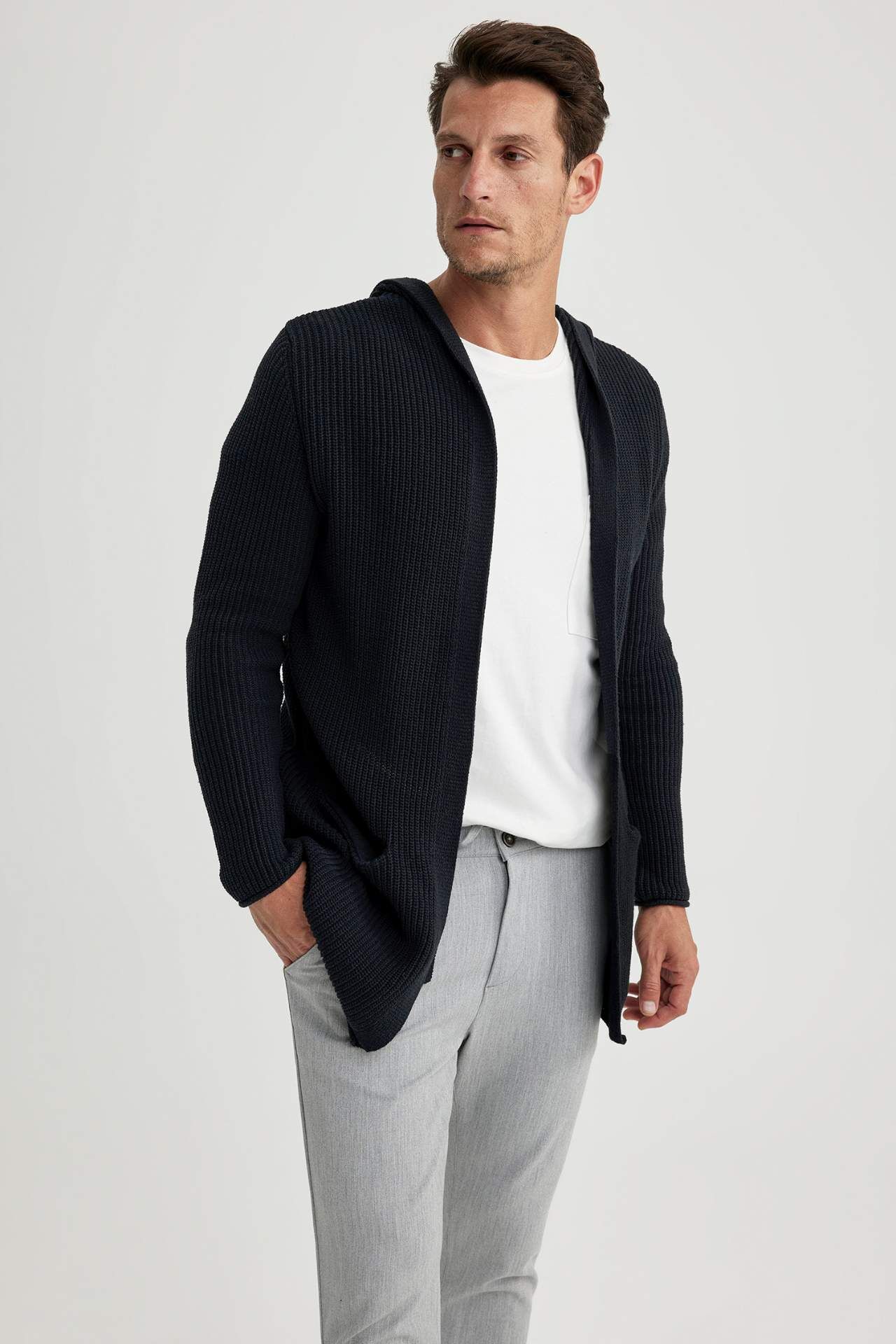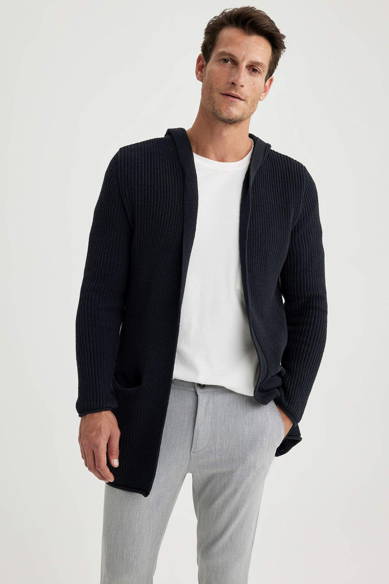 Standart Fit Kapüşonlu Triko Hırka