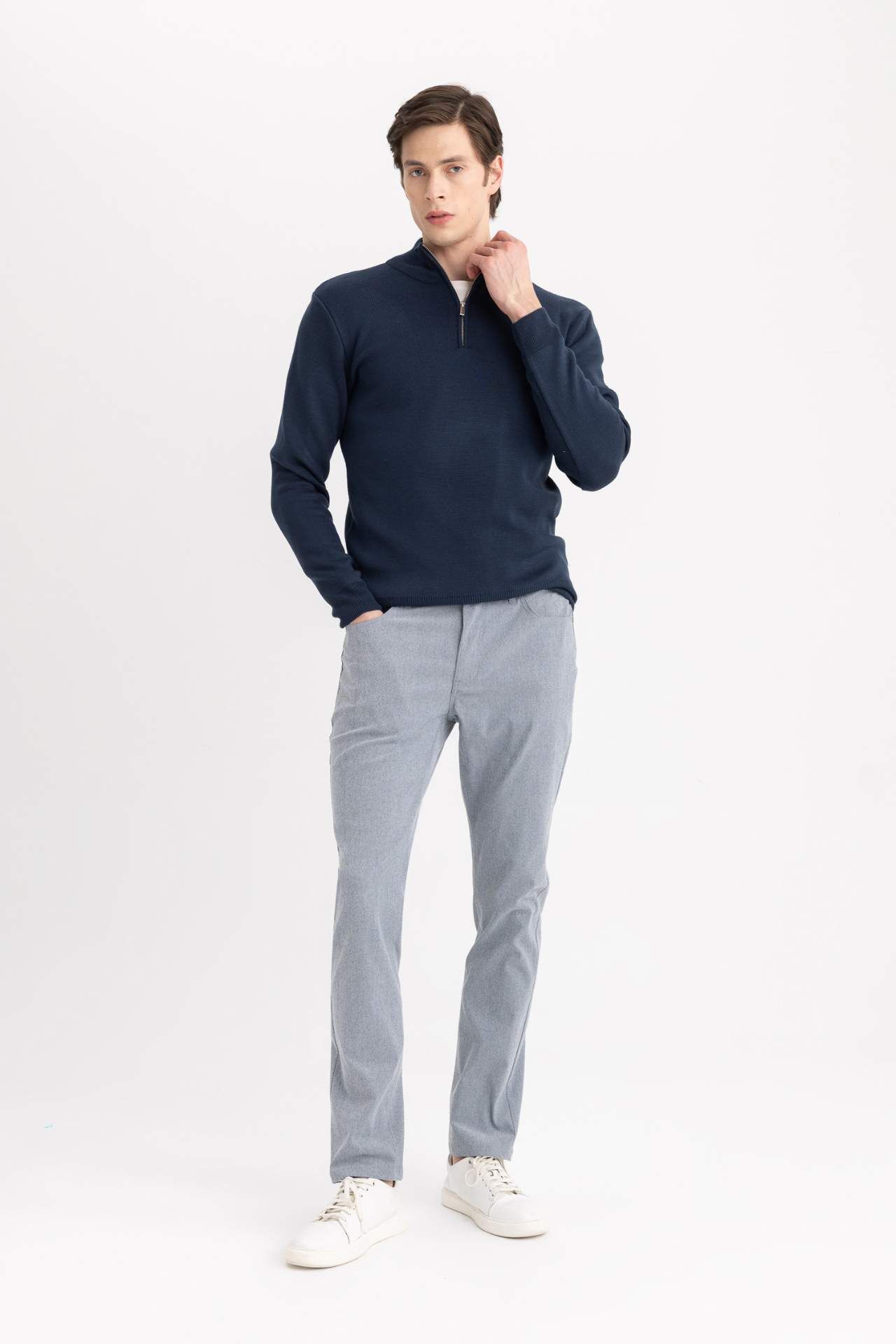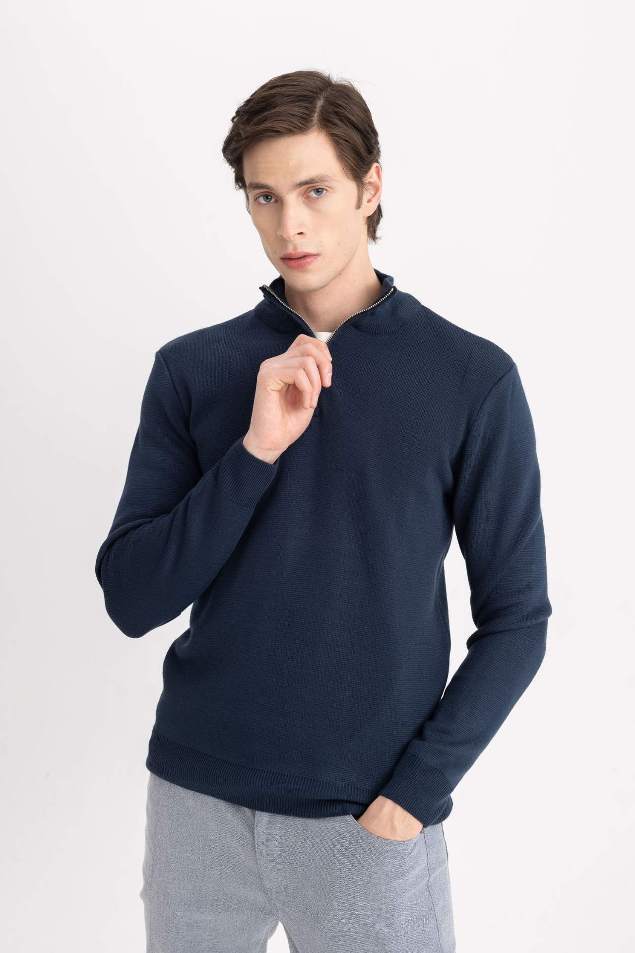 Standart fit dik yaka triko kazak, yarım fermuar detayı ve düz tasarımıyla sade ve modern bir görünüm sunar. Normal kesimiyle rahat bir kullanım sağlarken, her stile kolayca uyum sağlar. Akrilik 100%,Akrilik 100%,Akrilik 100%